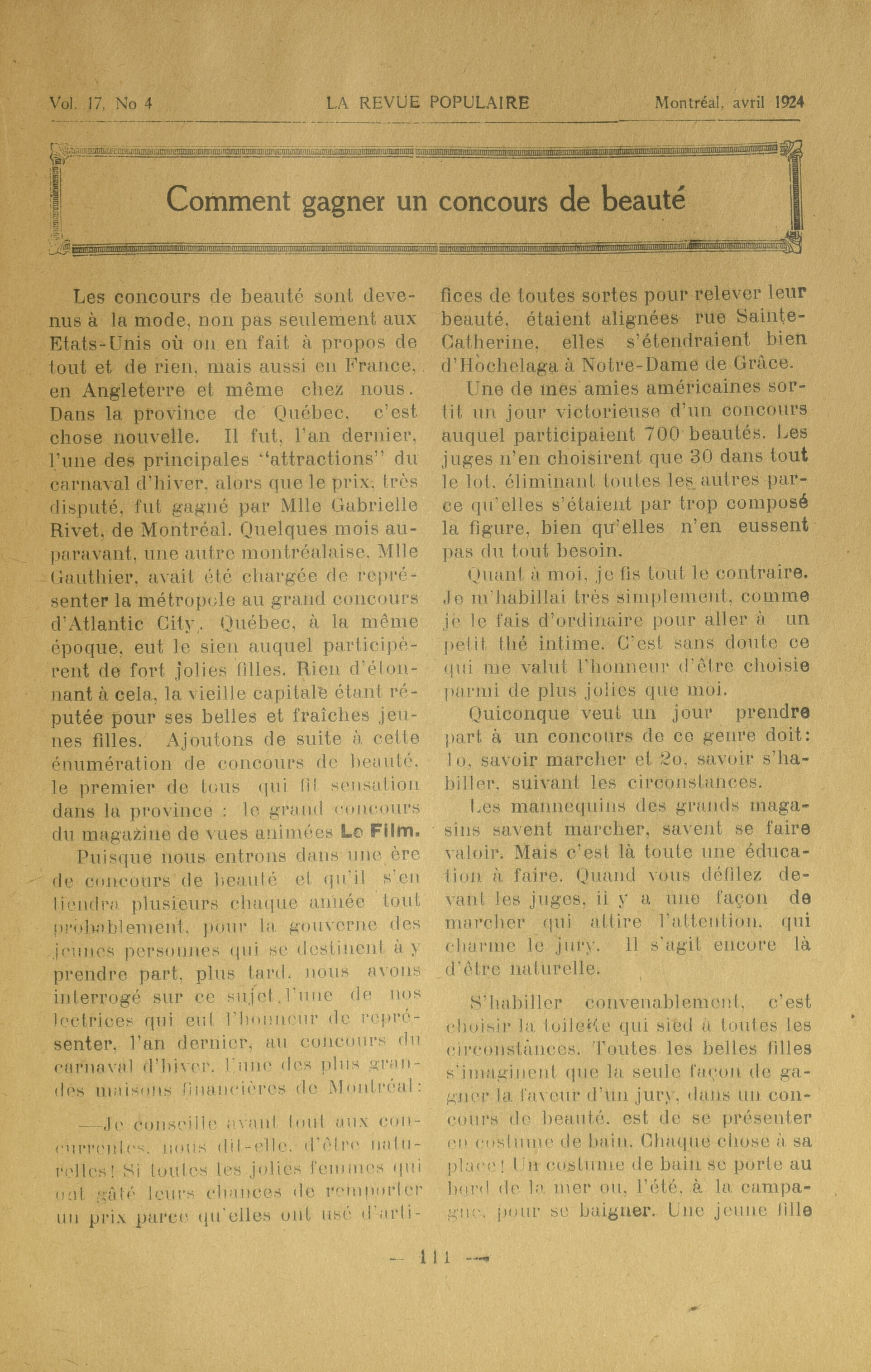 La Revue populaire. : La revue populaire : Vol. 17, No 4 (avril 1924)