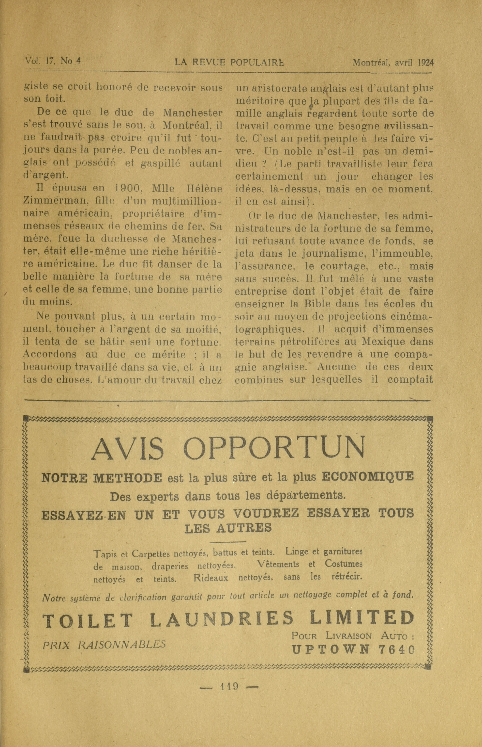 La Revue populaire. : La revue populaire : Vol. 17, No 4 (avril 1924)
