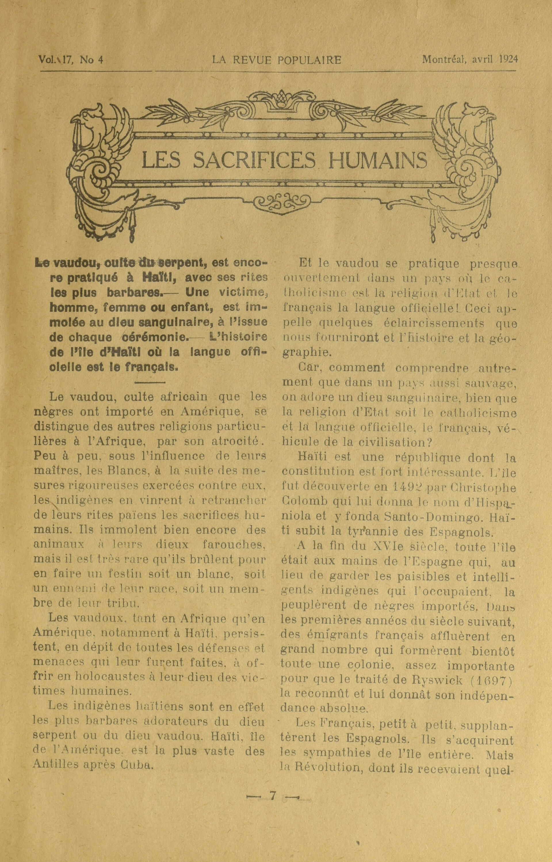 La Revue populaire. : La revue populaire : Vol. 17, No 4 (avril 1924)