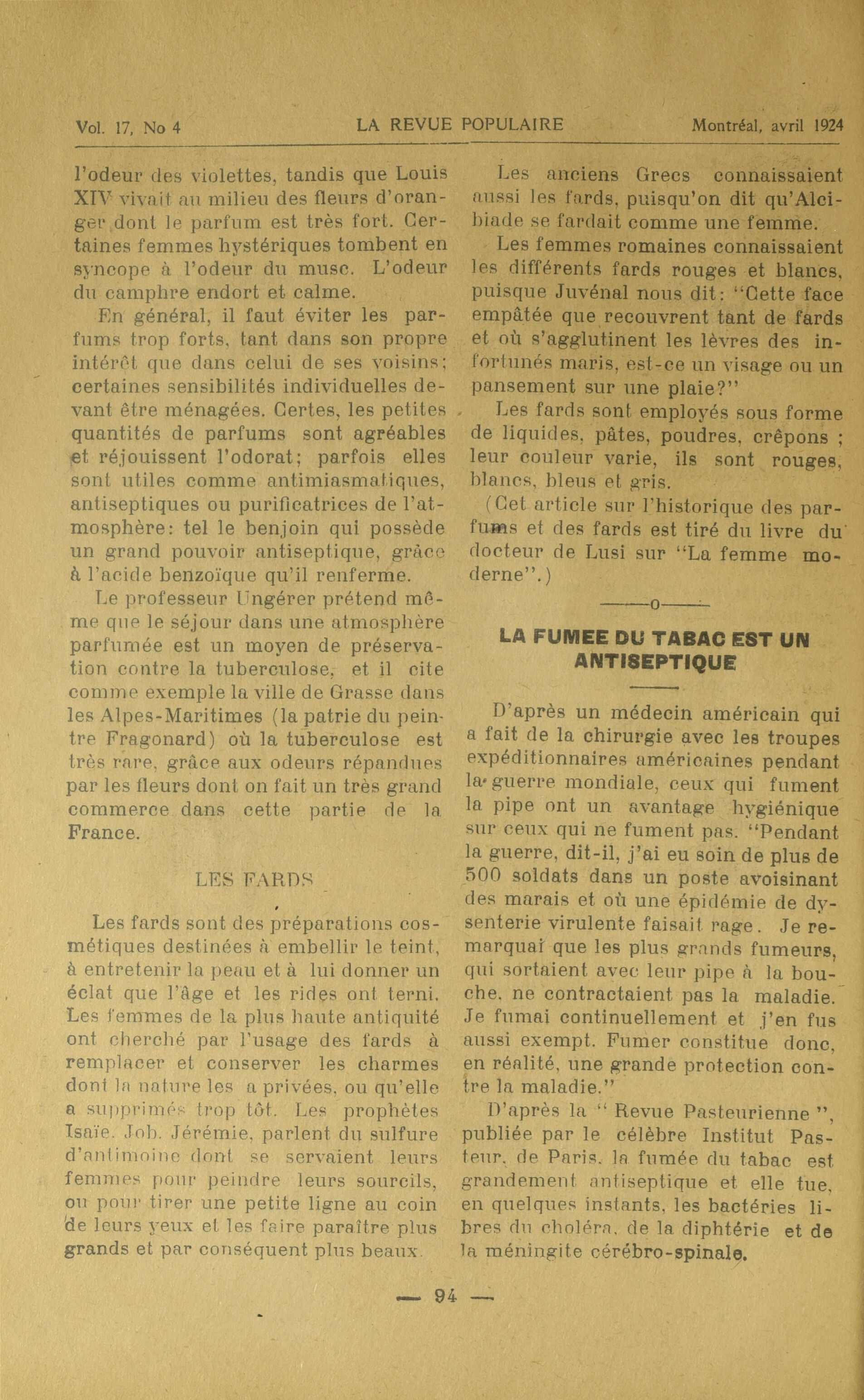 La Revue populaire. : La revue populaire : Vol. 17, No 4 (avril 1924)