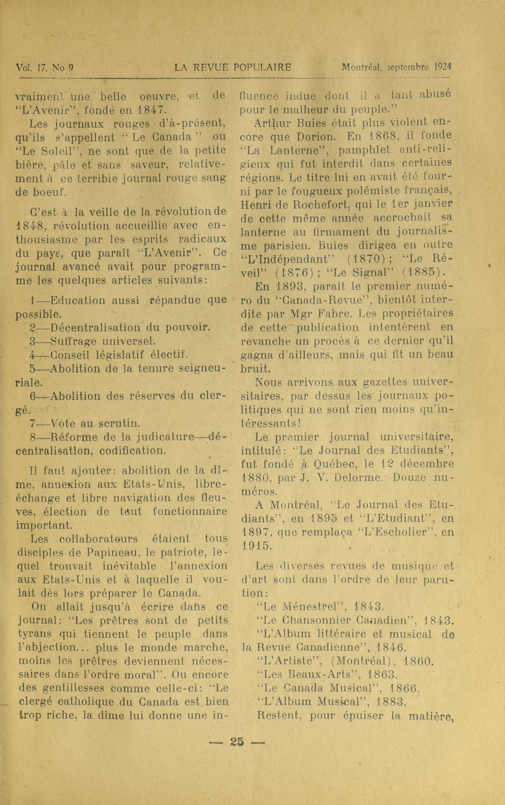 La Revue populaire. : La revue populaire : Vol. 17, No 9 (septembre 1924)