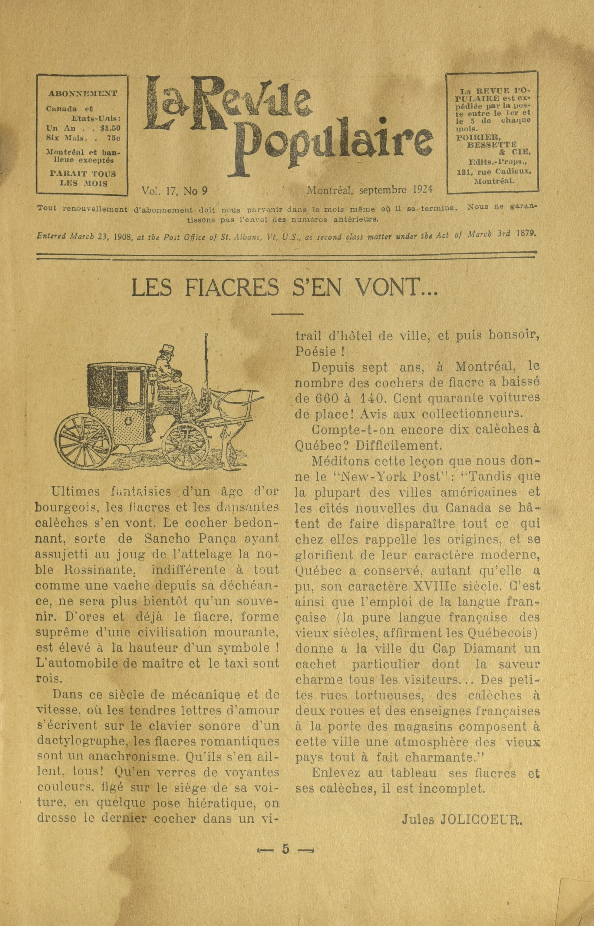 La Revue populaire. : La revue populaire : Vol. 17, No 9 (septembre 1924)