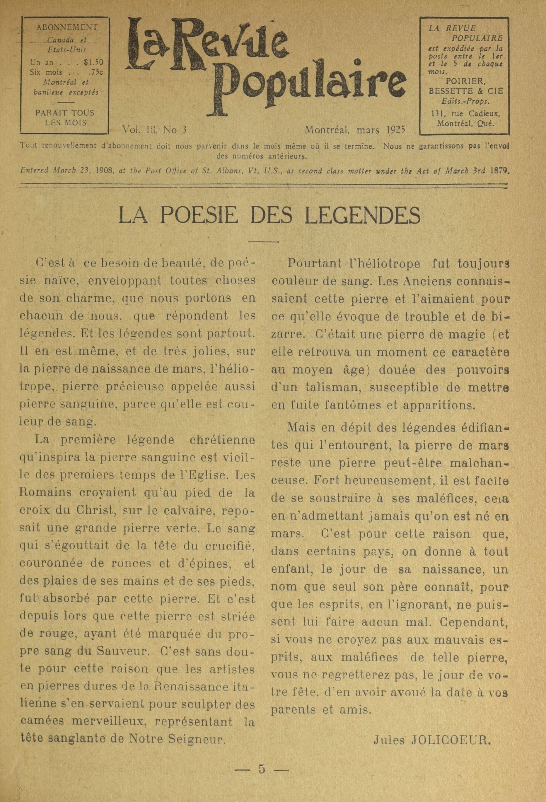 La Revue populaire. : La revue populaire : Vol. 18, No 3 (mars 1925)