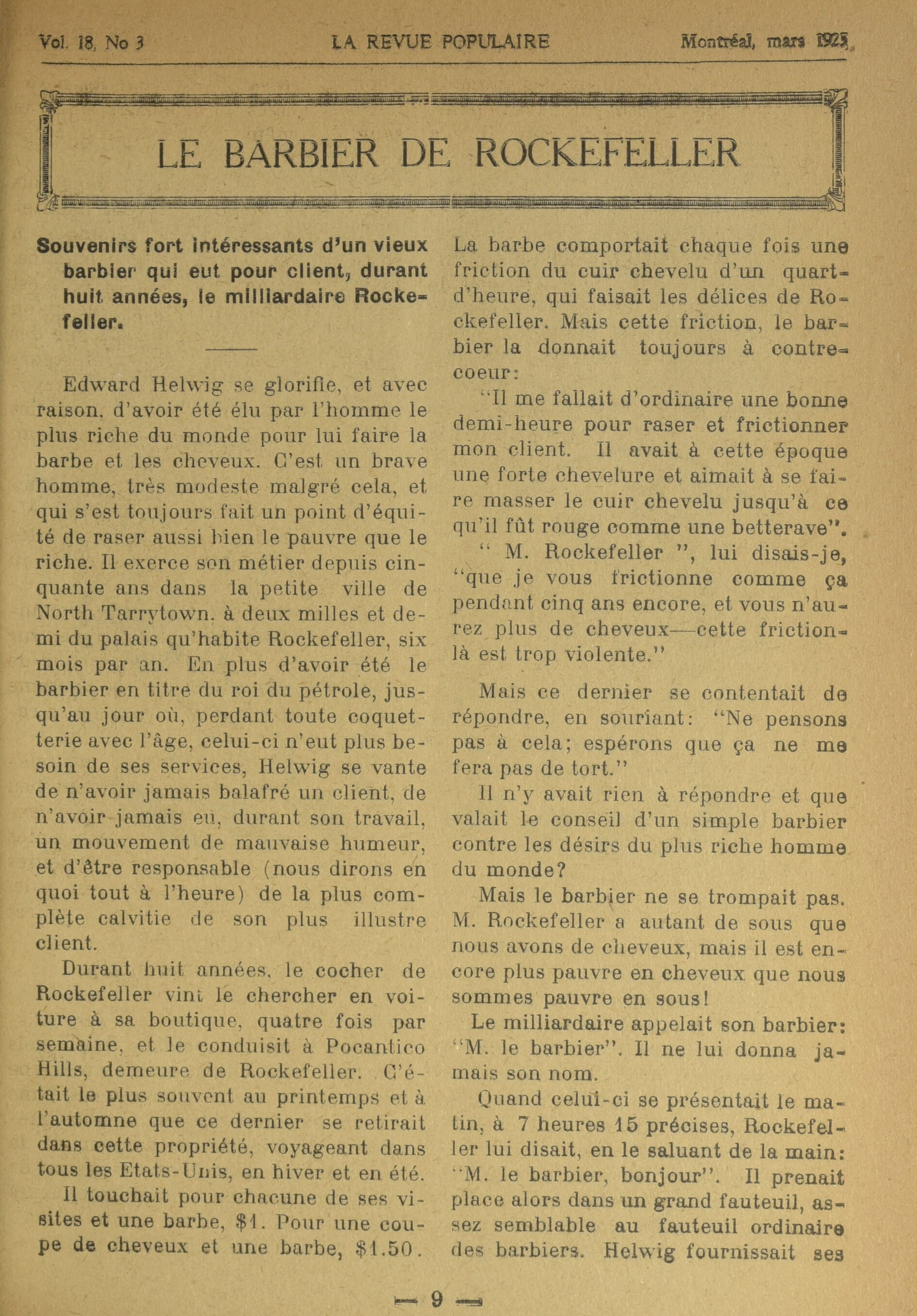 La Revue populaire. : La revue populaire : Vol. 18, No 3 (mars 1925)