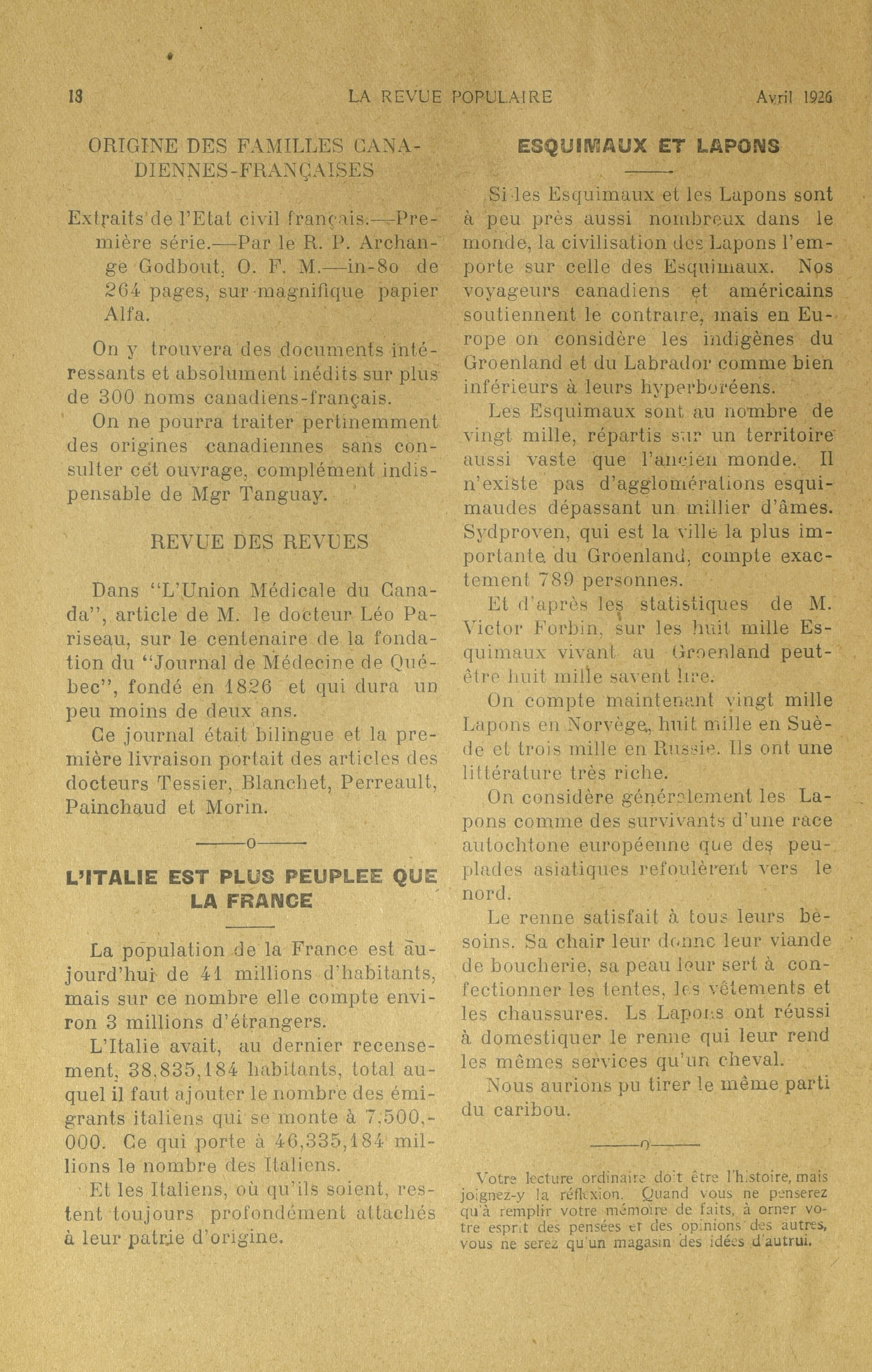 La Revue populaire. : La revue populaire : Vol. 19, No 4 (avril 1926)