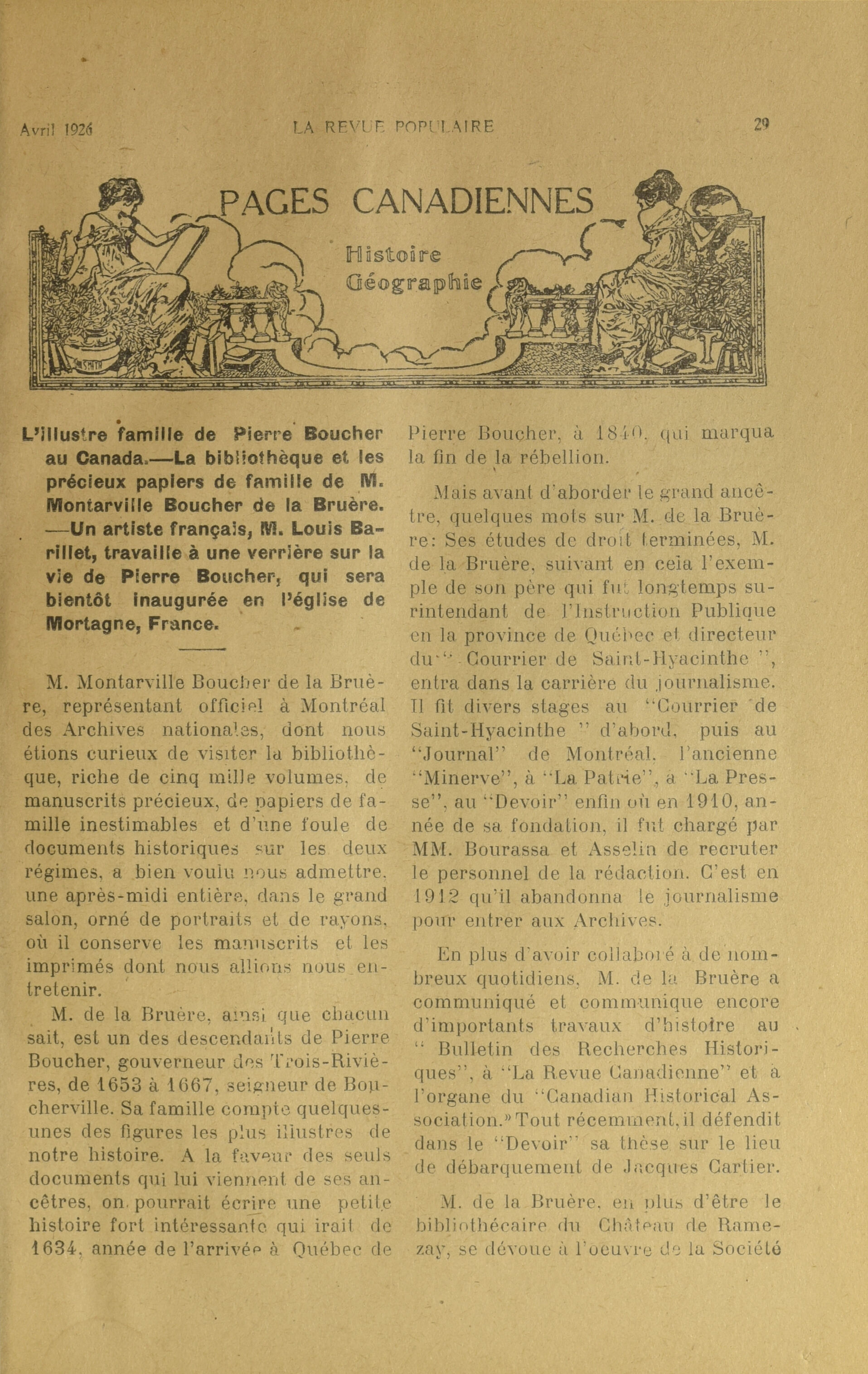 La Revue populaire. : La revue populaire : Vol. 19, No 4 (avril 1926)