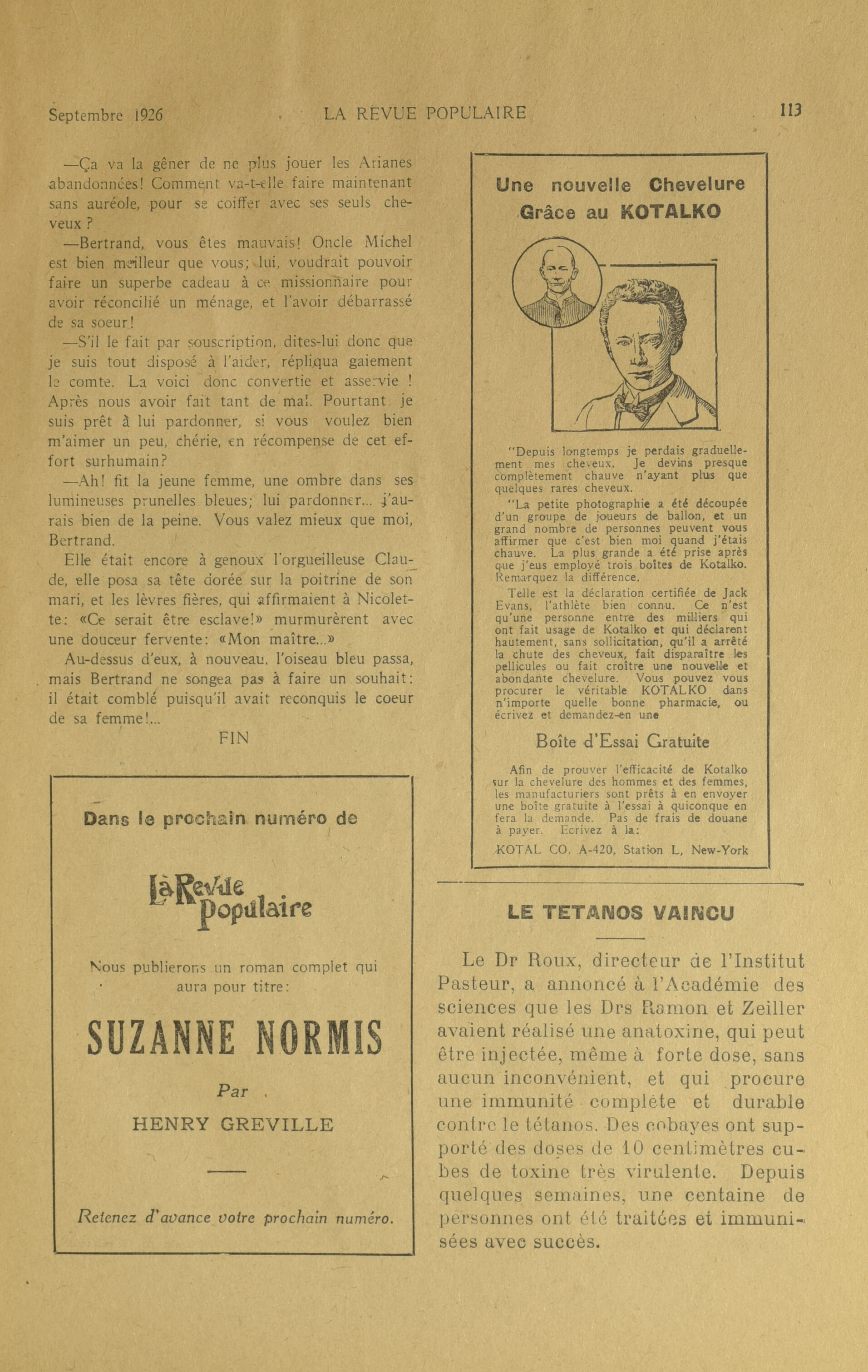 La Revue populaire. : La revue populaire : Vol. 19, No 9 (septembre 1926)