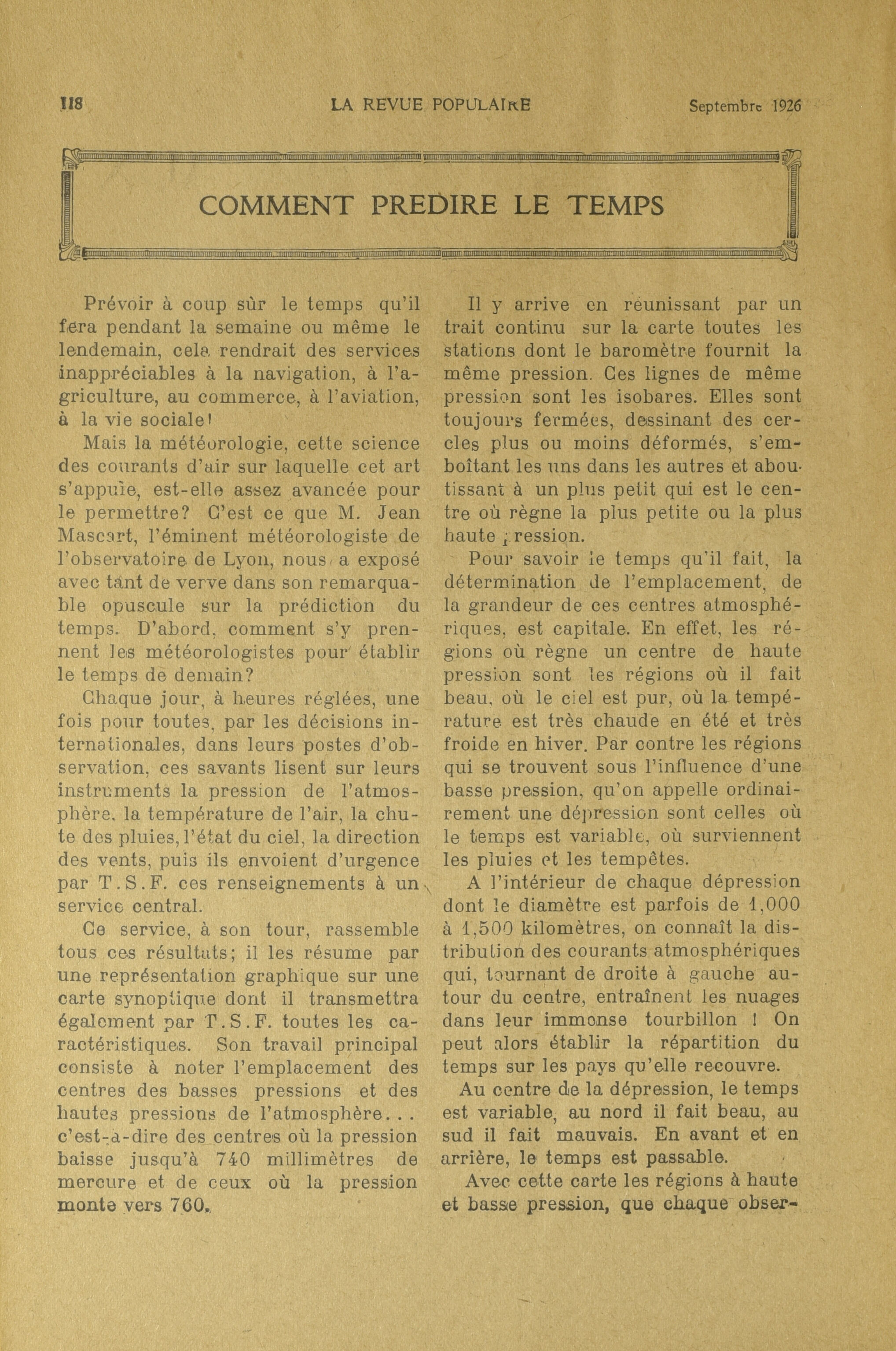 La Revue populaire. : La revue populaire : Vol. 19, No 9 (septembre 1926)