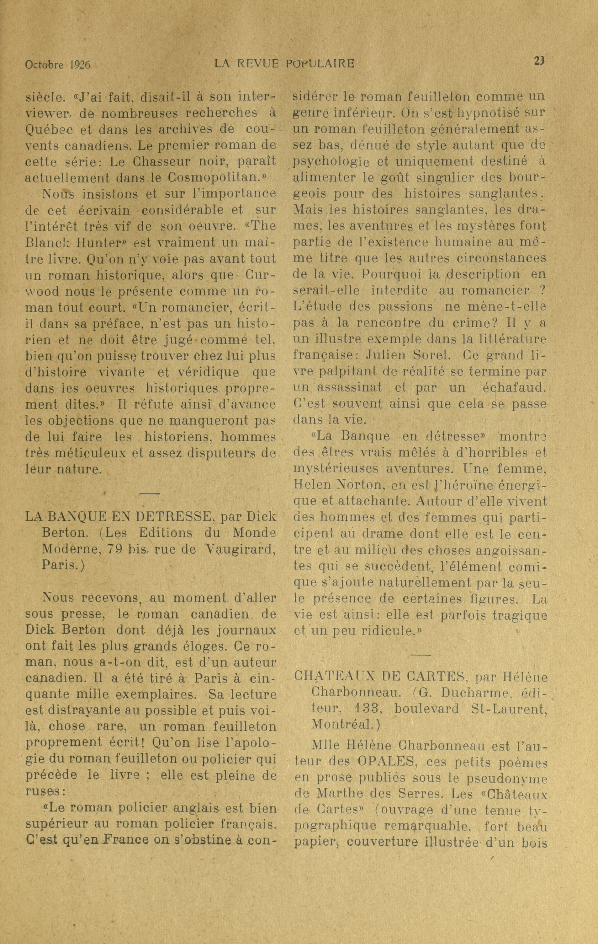 La Revue populaire. : La revue populaire : Vol. 19, No 10 (octobre 1926)