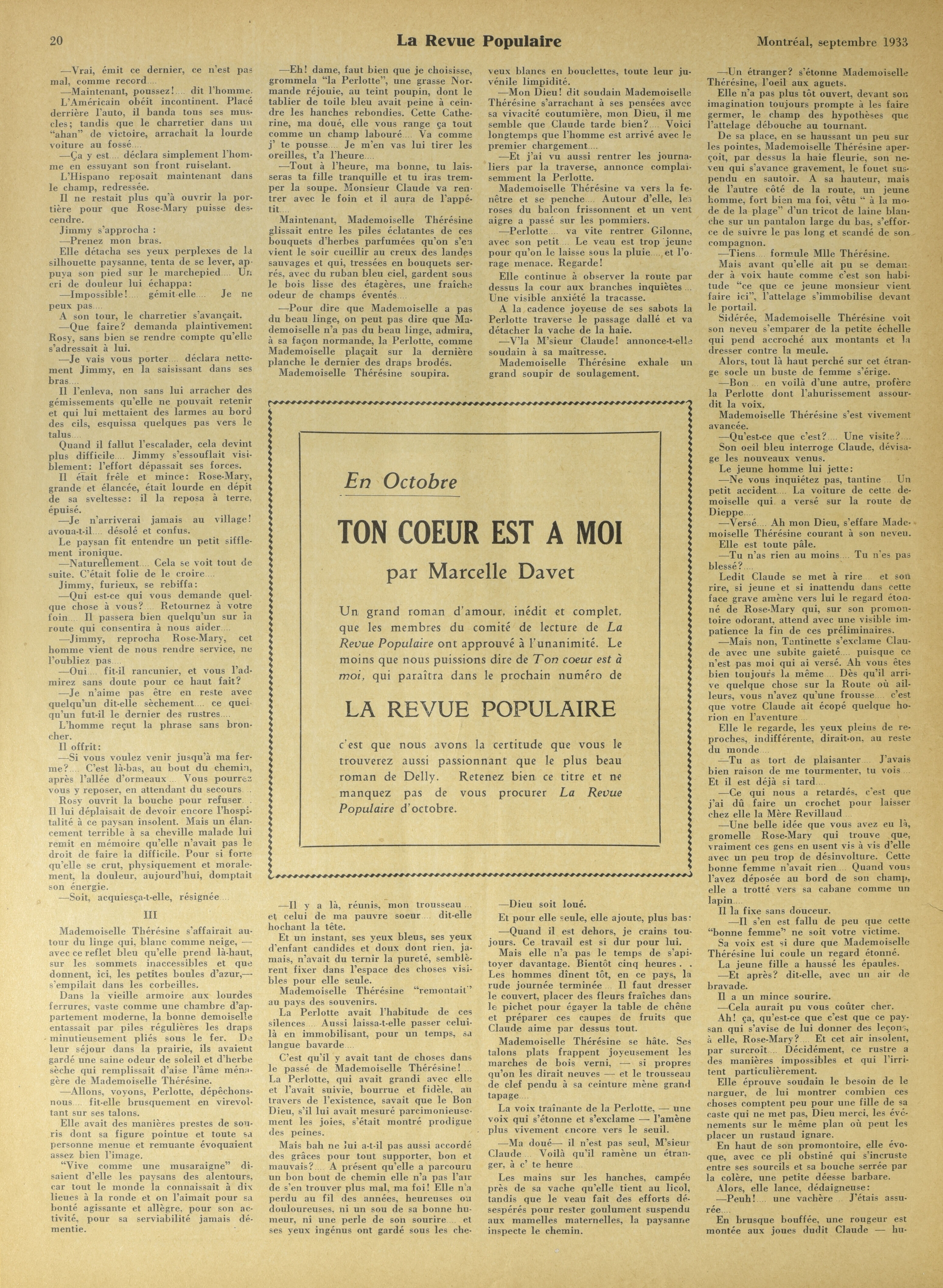 La Revue populaire. : La revue populaire : 26e année, No 9 (septembre 1933)