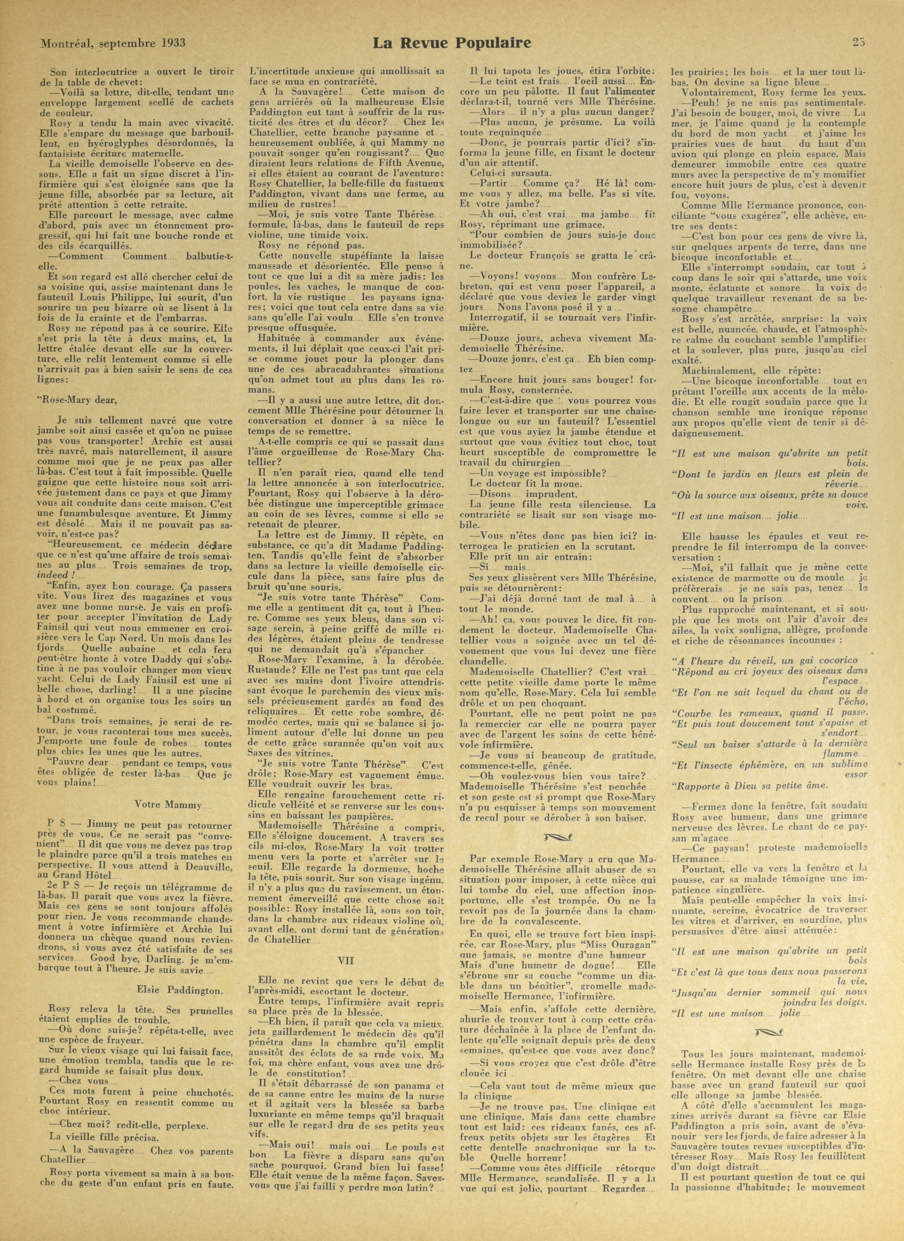 La Revue populaire. : La revue populaire : 26e année, No 9 (septembre 1933)