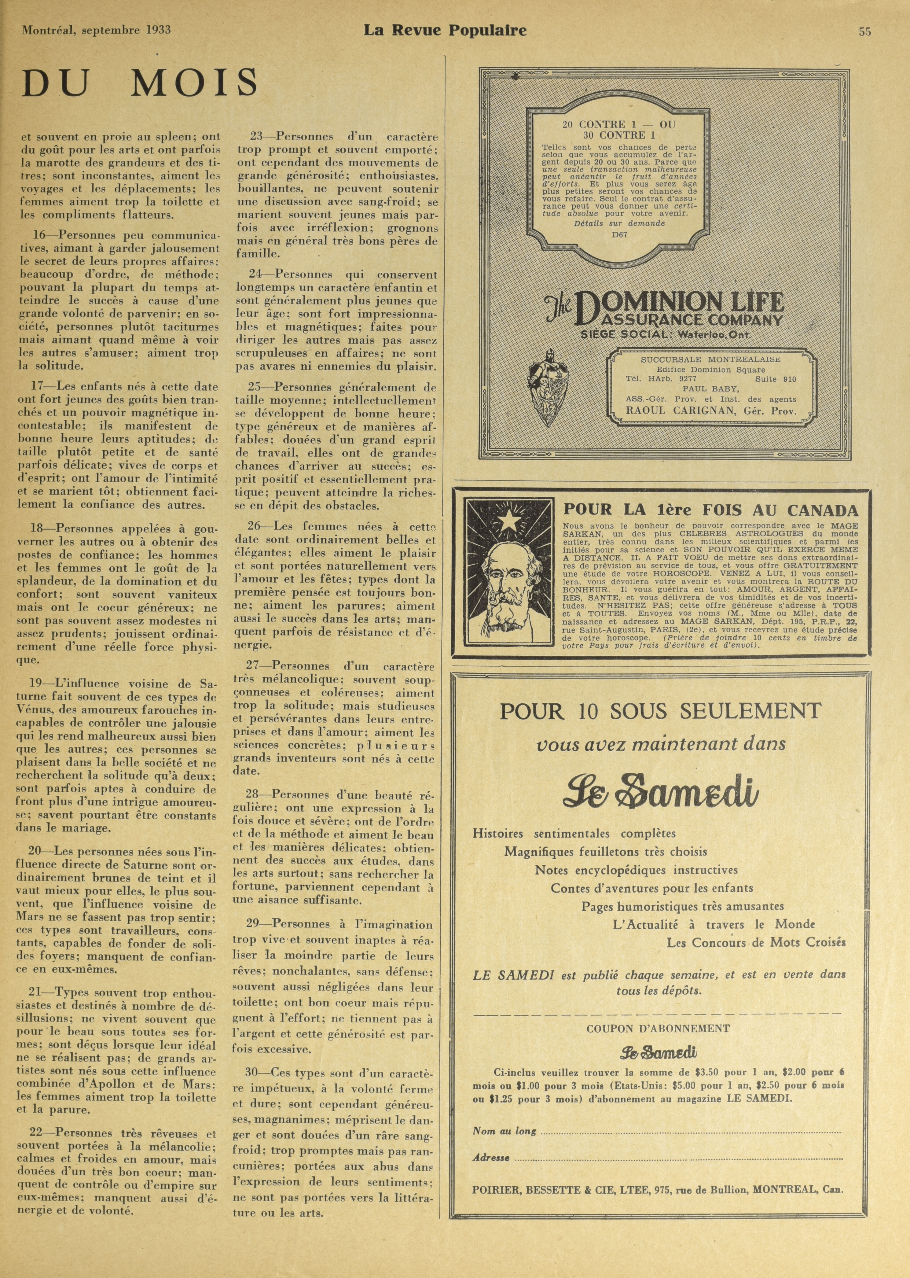 - La revue populaire : 26e année, No 9 (septembre 1933)