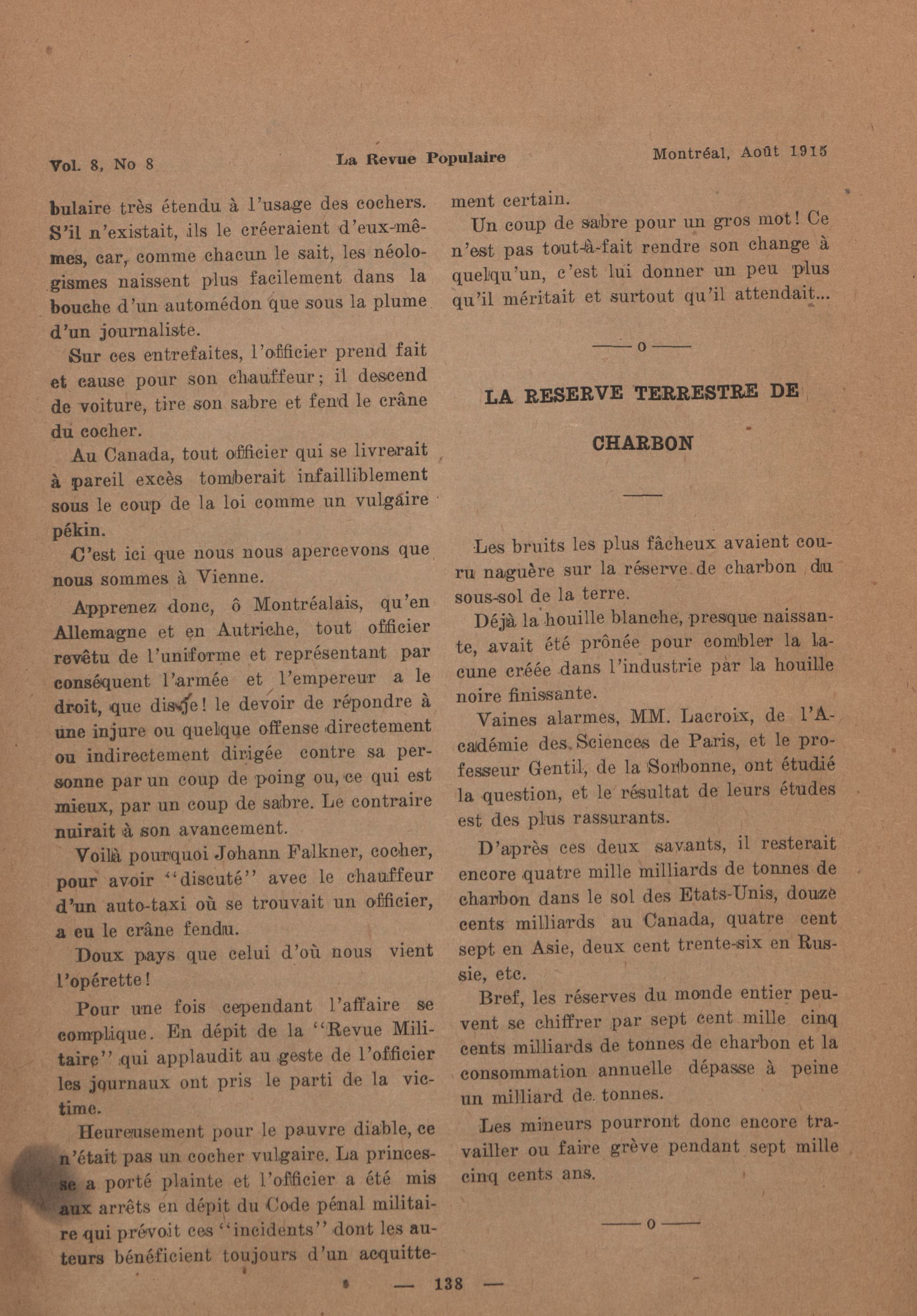 La Revue populaire. : La Revue Populaire : Vol. 8, No 8 (Août 1915)