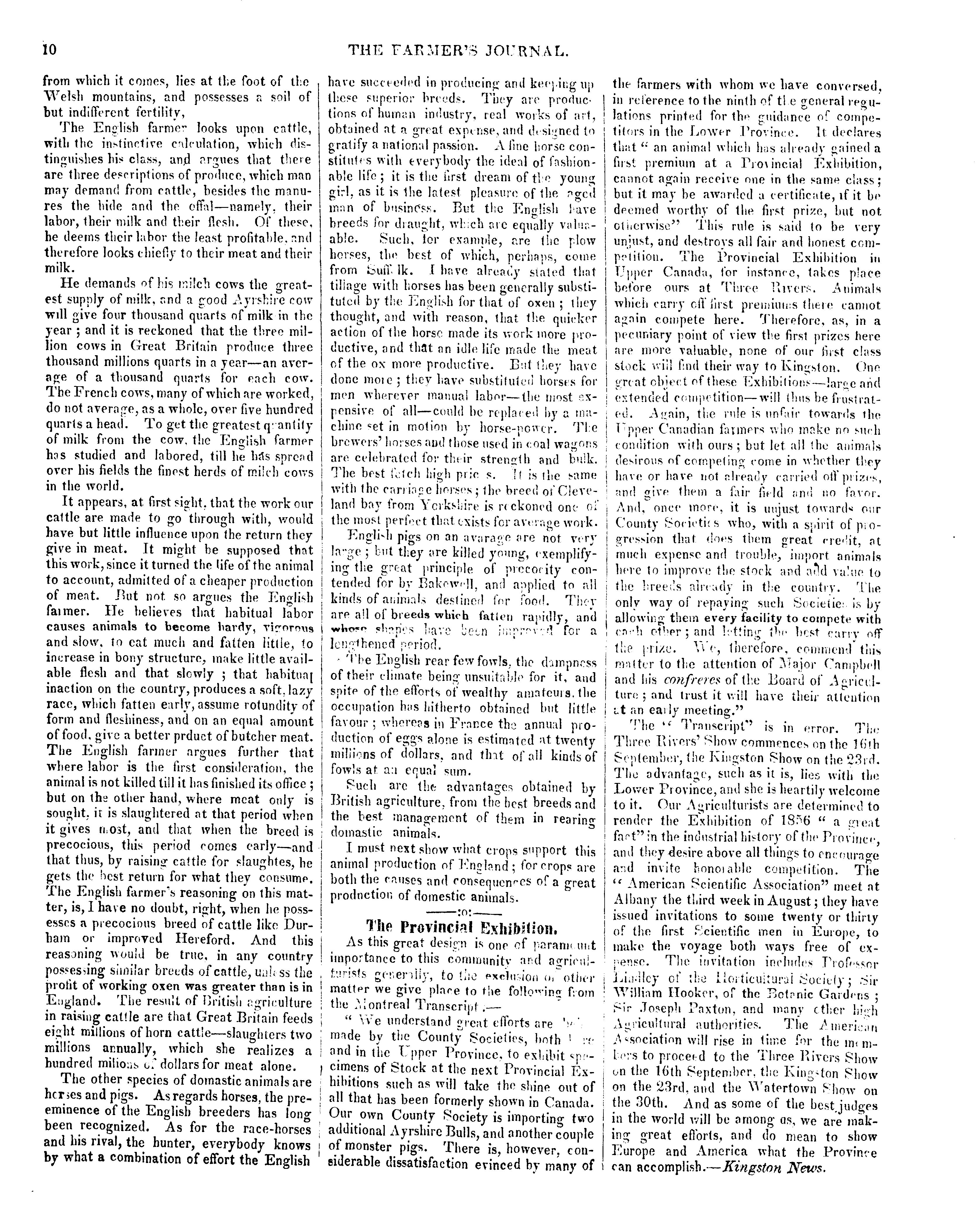 - The farmer's journal and transactions of the Lower Canada Board of Agriculture [Vol. 4, no. 1 (May 1856)]
