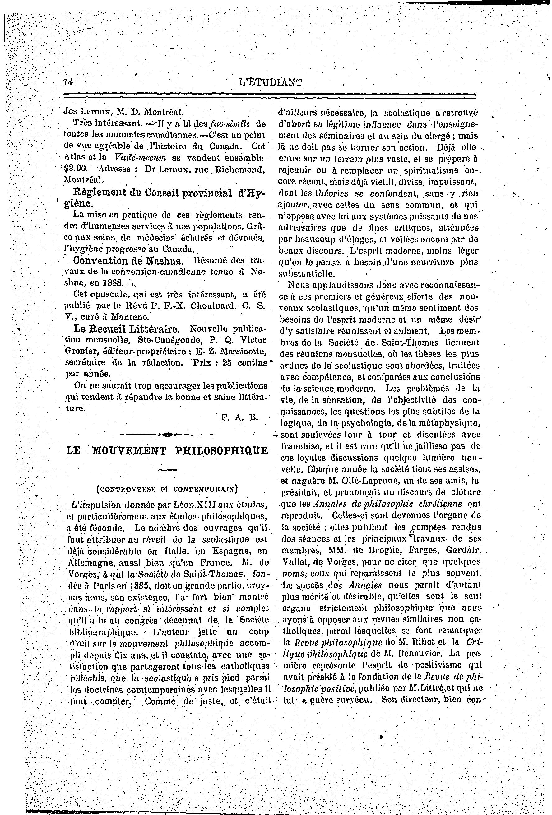 L'étudiant : [5e année, no 48 (avril 1889)]