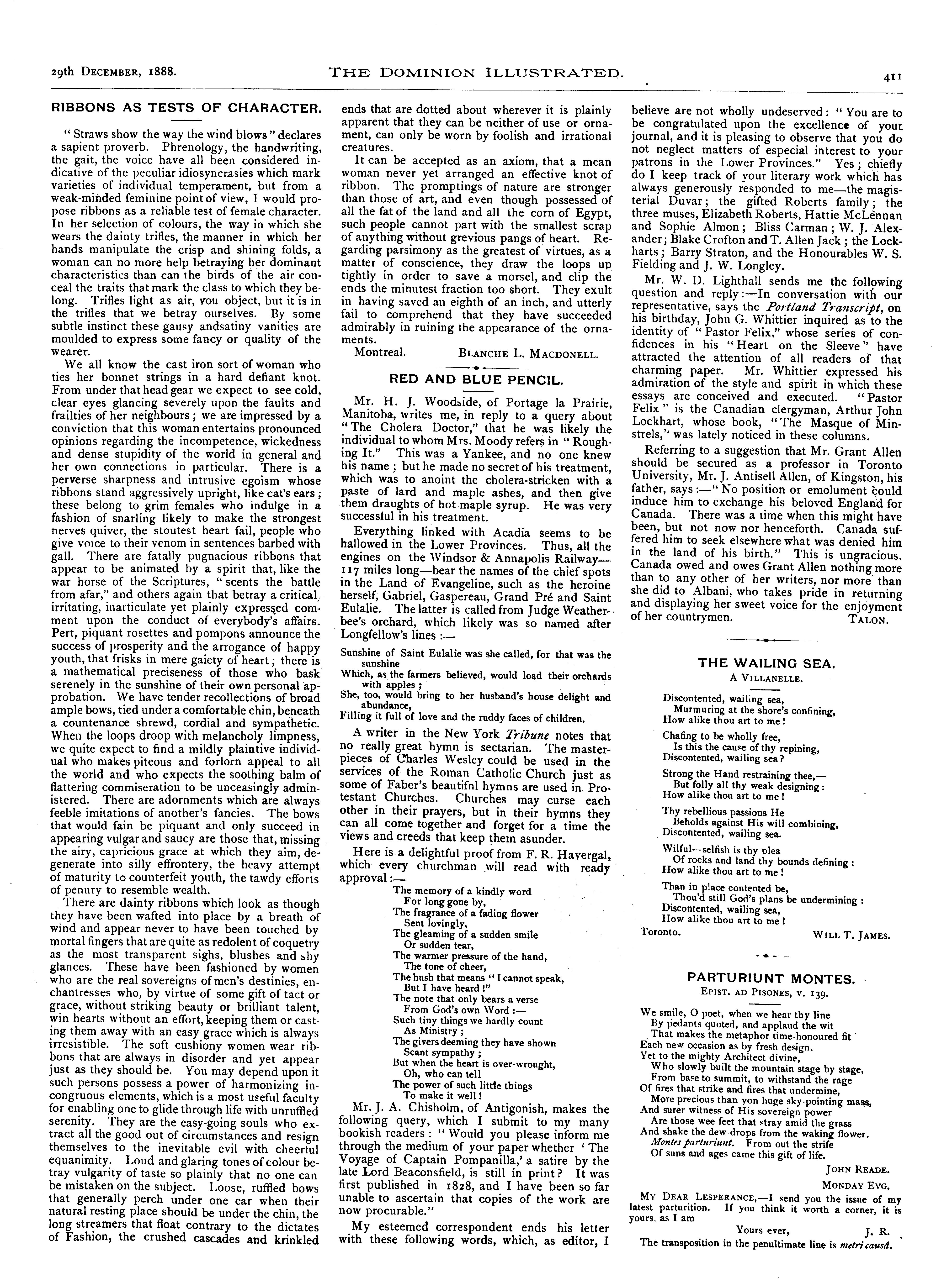- The Dominion illustrated [Vol. 1, no. 26 (Dec. 29, 1888)]