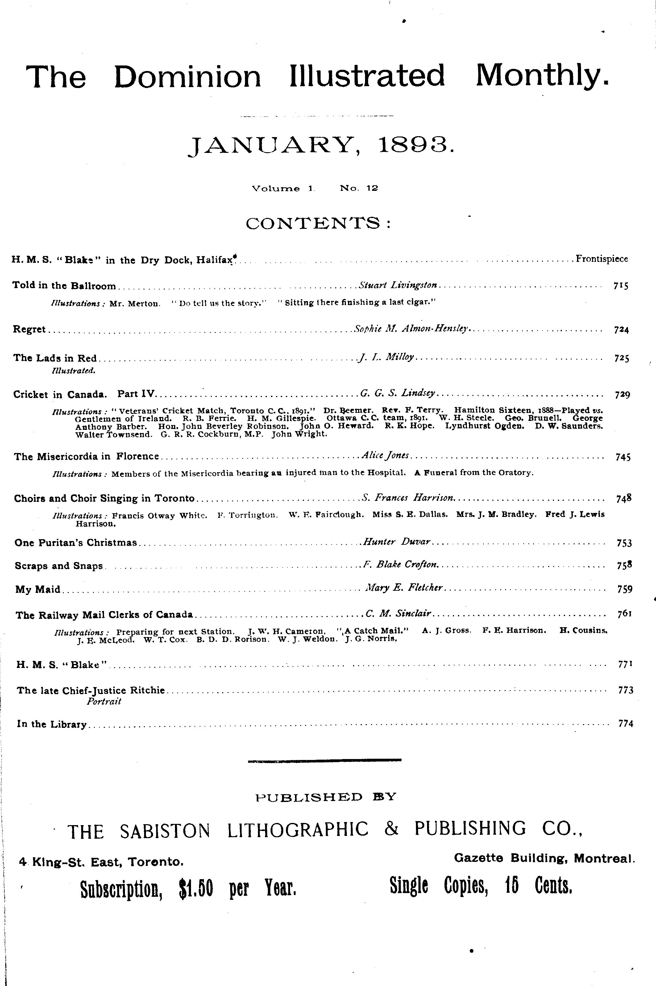 - The Dominion illustrated monthly [Vol. 1 no. 12 (Jan. 1893)]