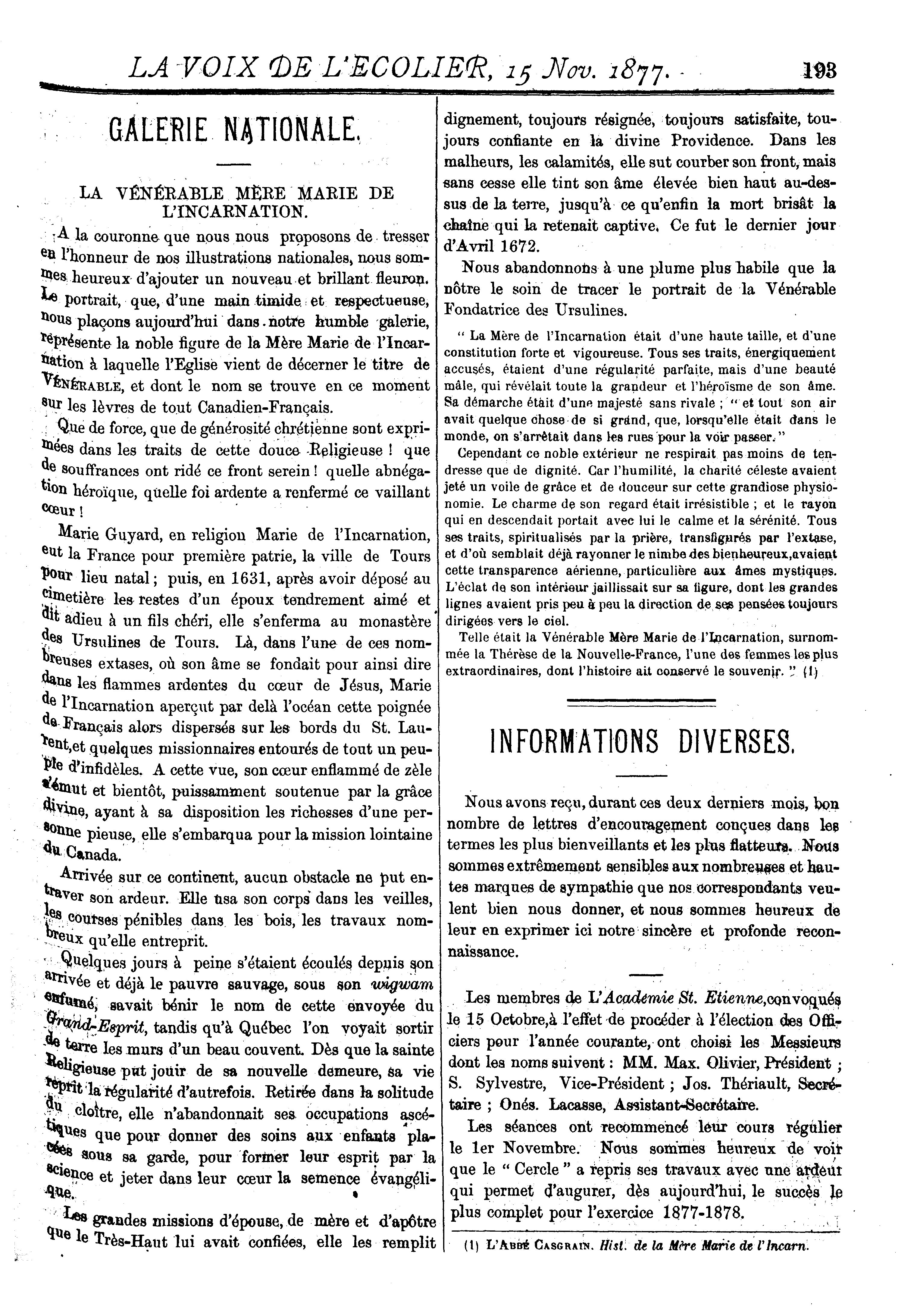- La voix de l'écolier du Collège Joliette [Vol. 2, no 5 (15 nov. 1877)]