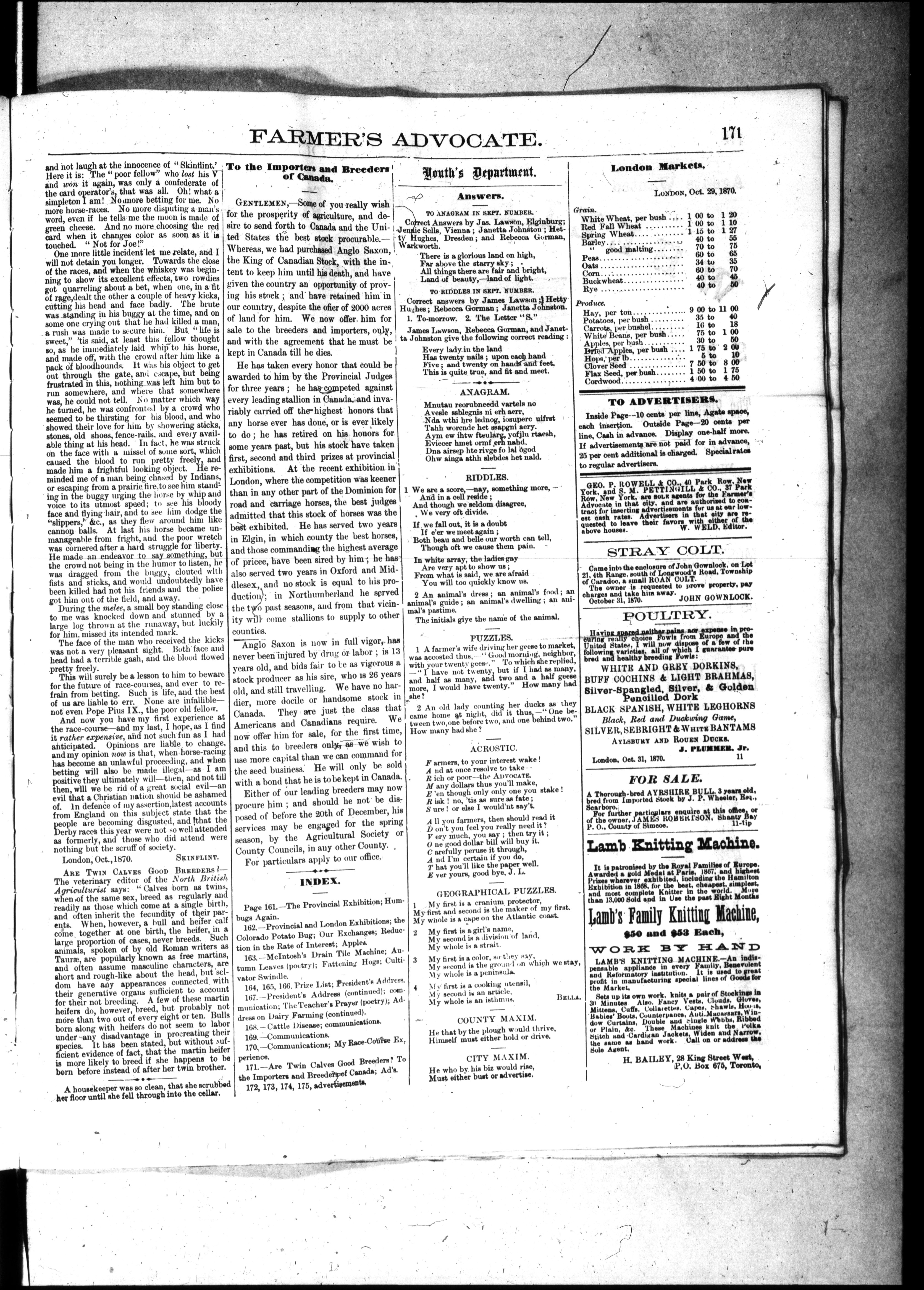 The monthly farmer's advocate : Volume V, Number 11 (Nov. 1870)
