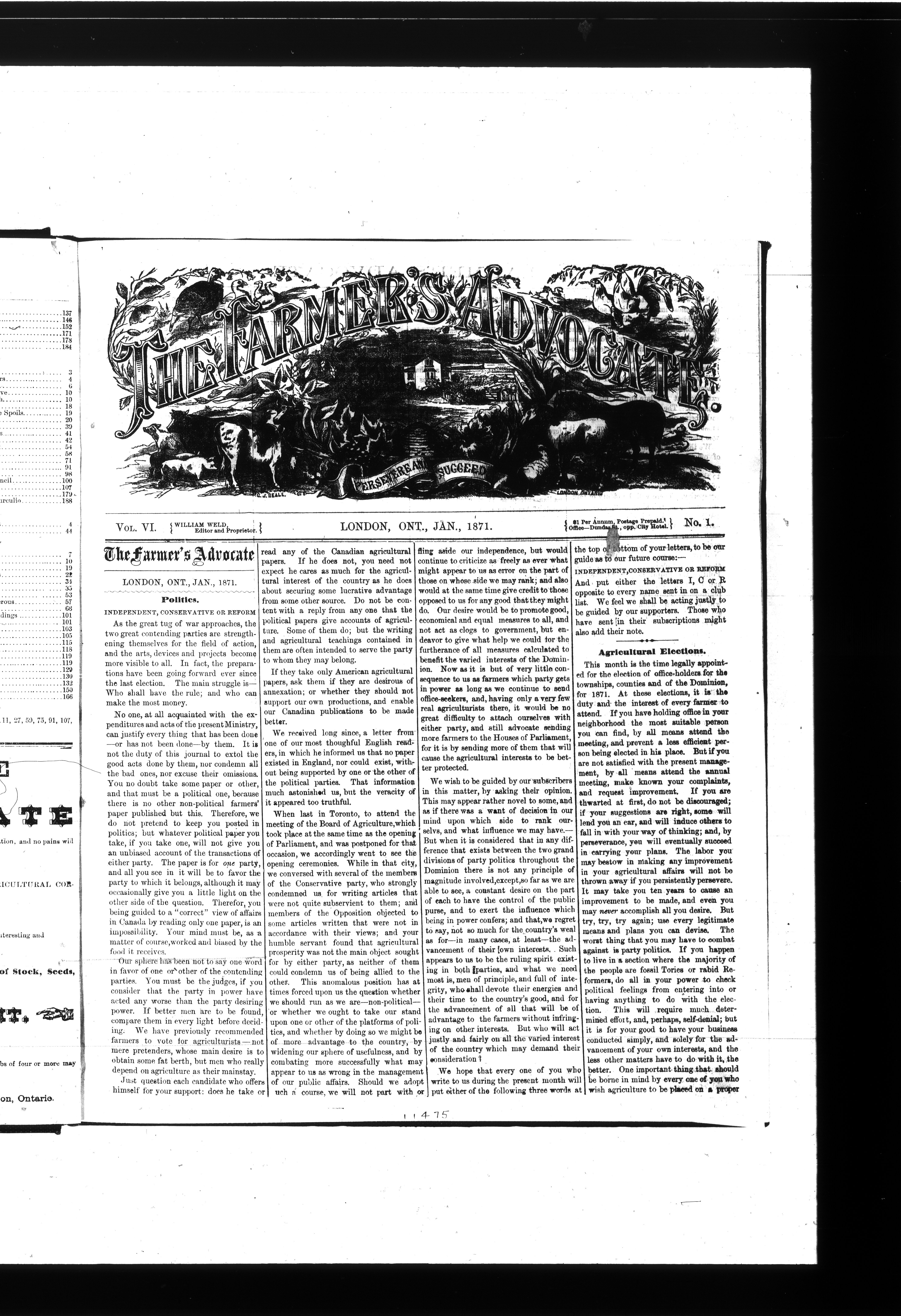The farmer's advocate : Vol. VI, No. 1 (Jan. 1871)