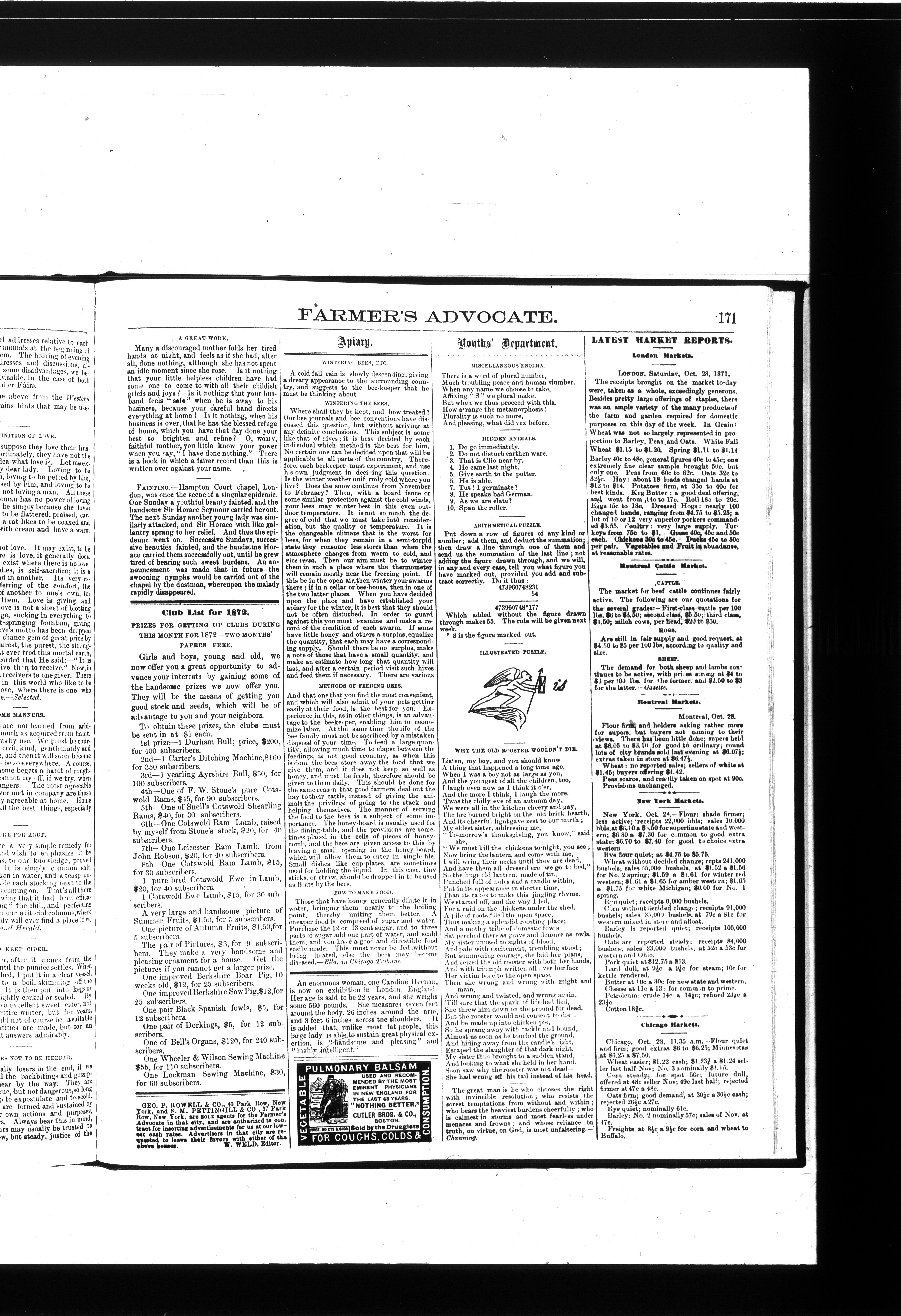 The farmer's advocate : Vol. VI, No. 11 (Nov. 1871)