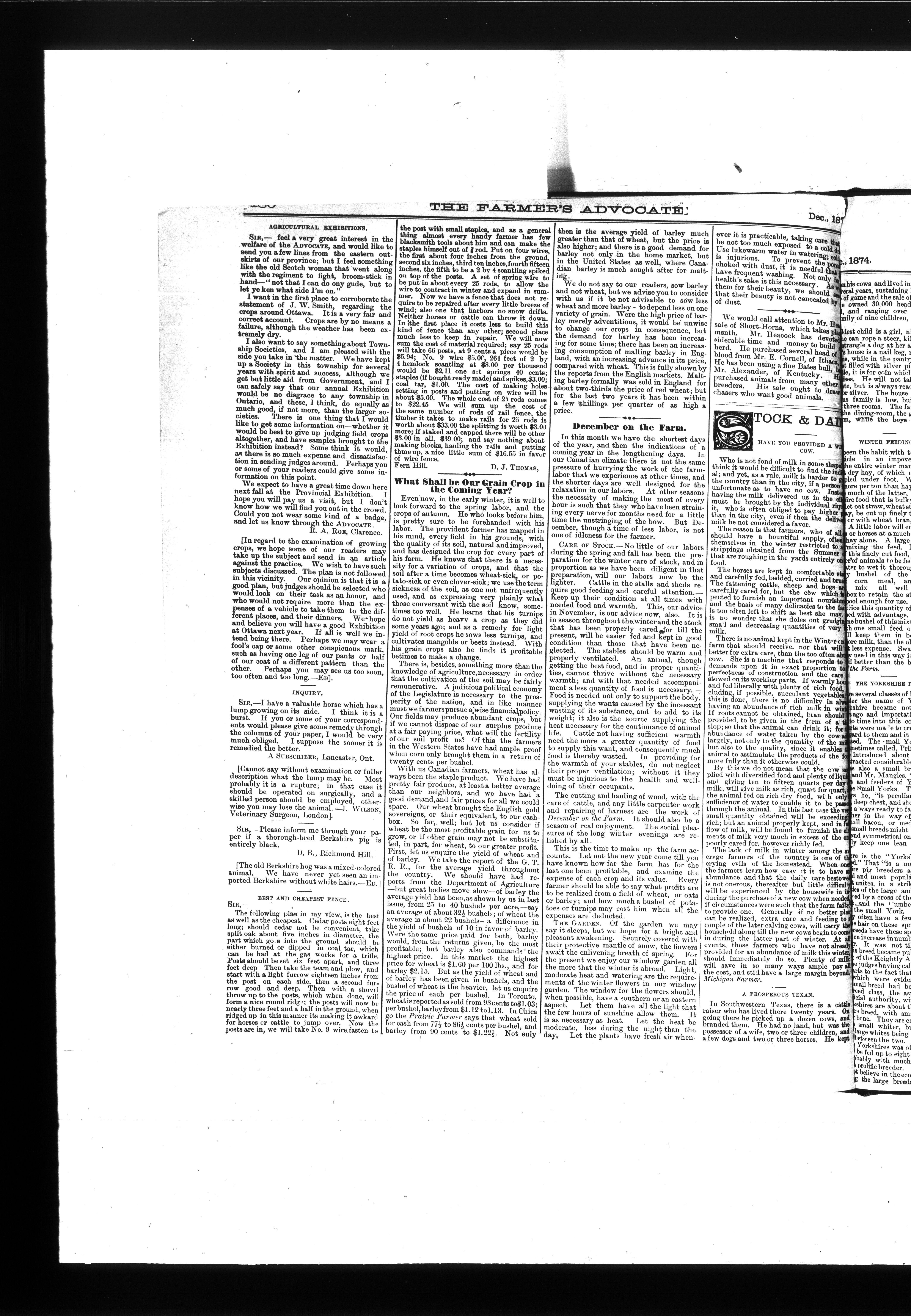 The farmer's advocate : Vol. X [i.e. IX.], No. 12 (December 1874)