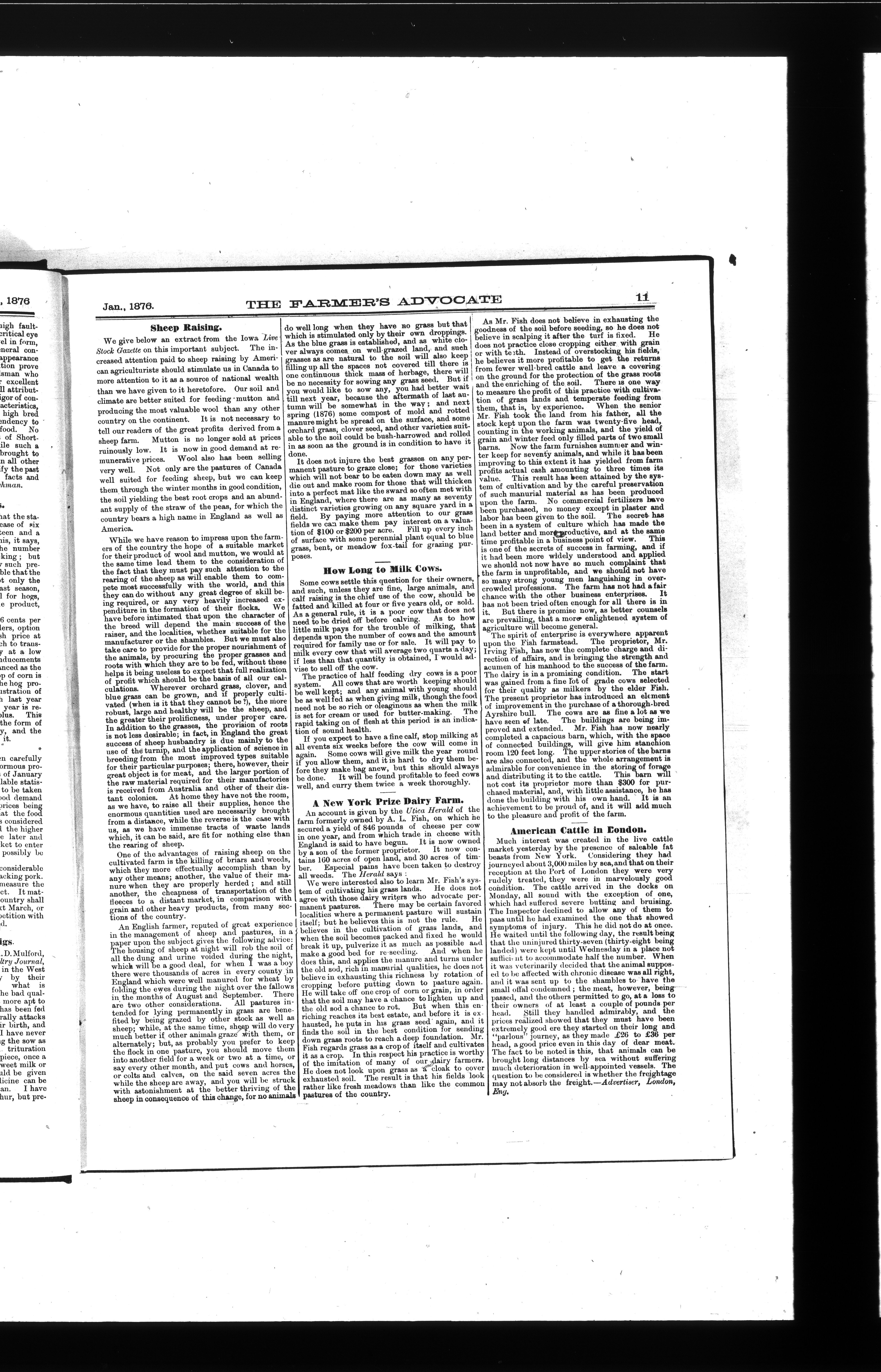 The farmer's advocate : Vol. XI, No. 1 (January 1876)