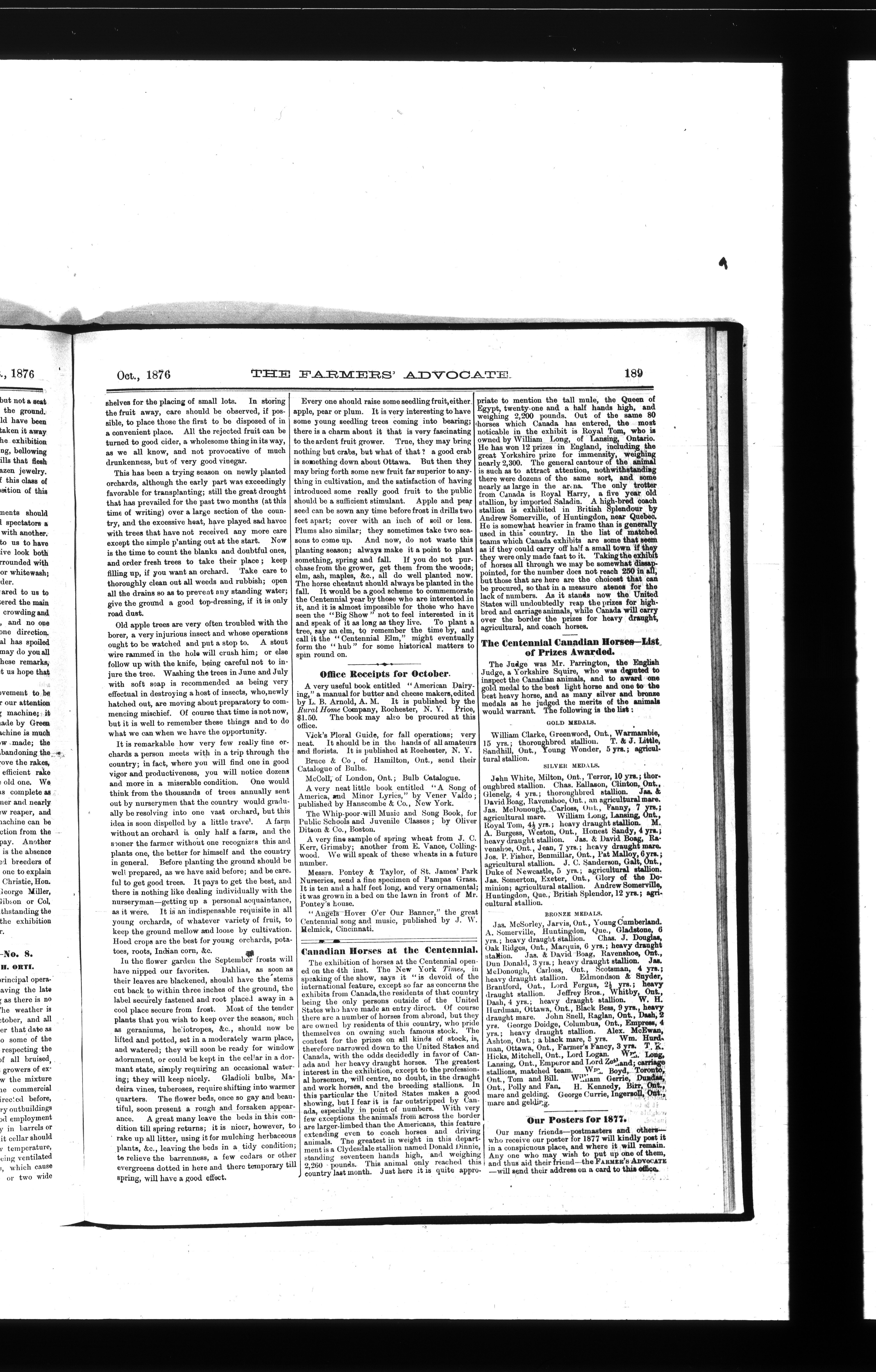 The farmer's advocate : Vol. XI, No. 10 (October 1876)