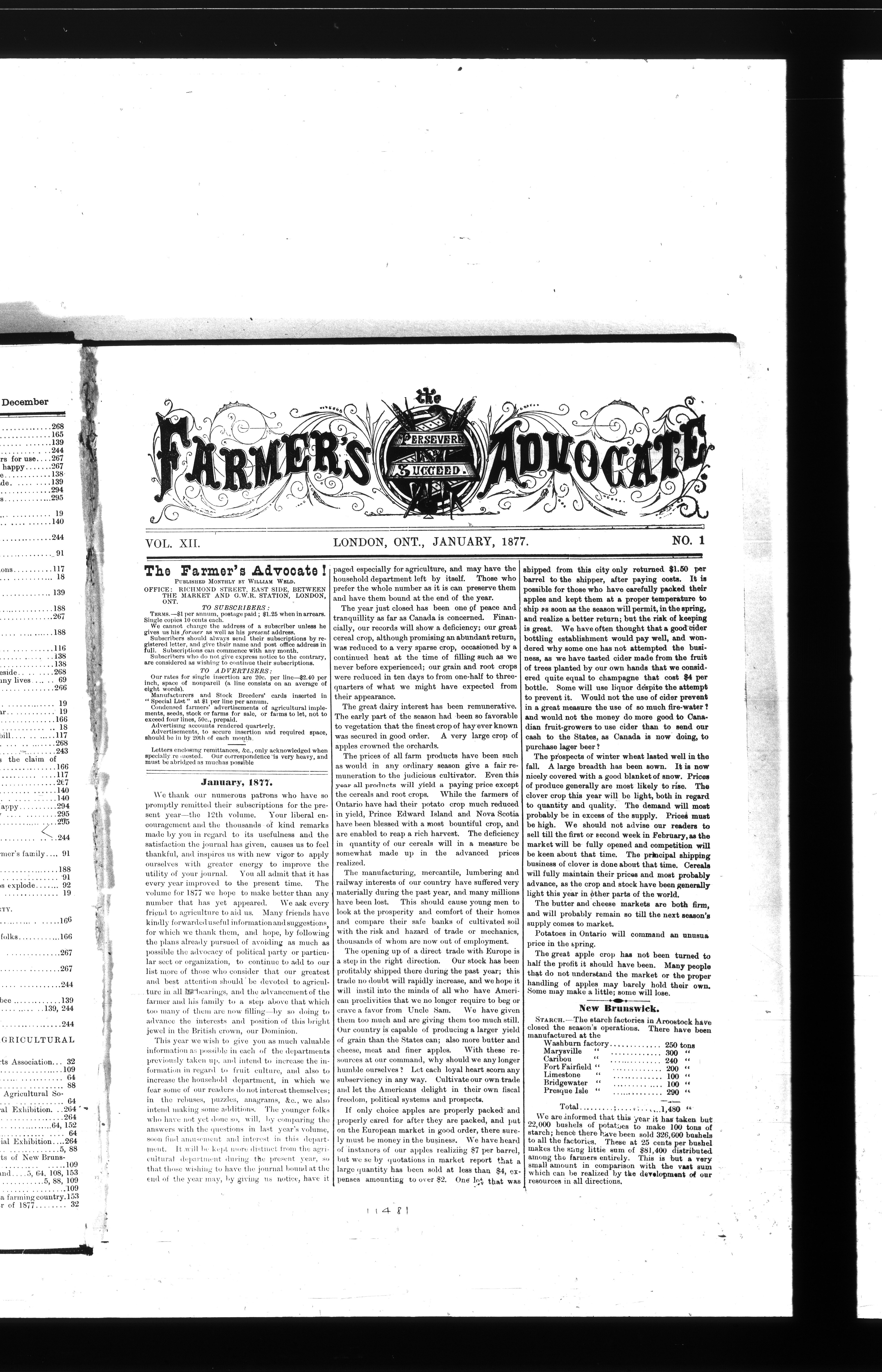 The farmer's advocate : Vol. XII, No. 1 (January 1877)