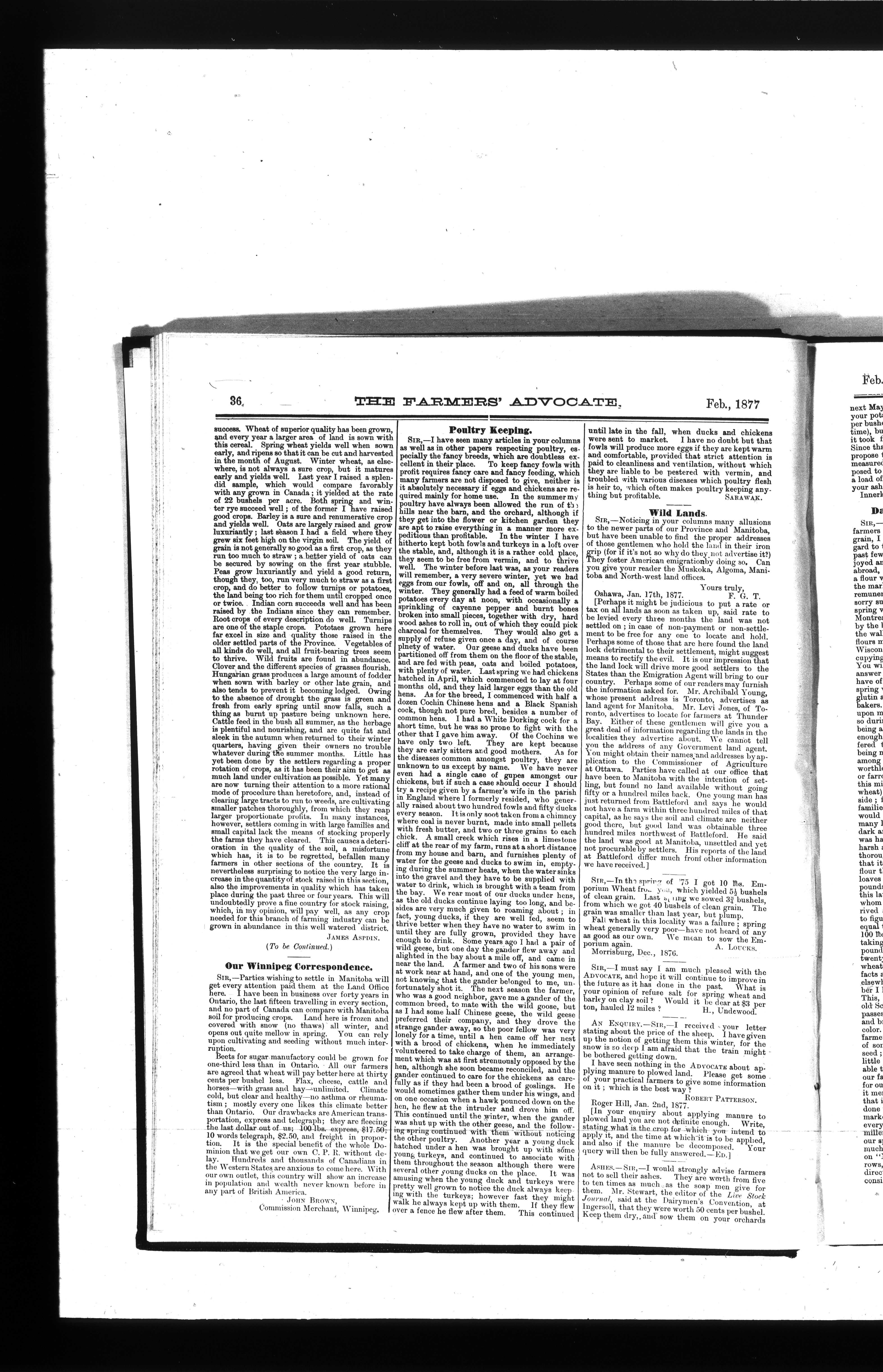 The farmer's advocate : Vol. XII, No. 2 (Febraury 1877)