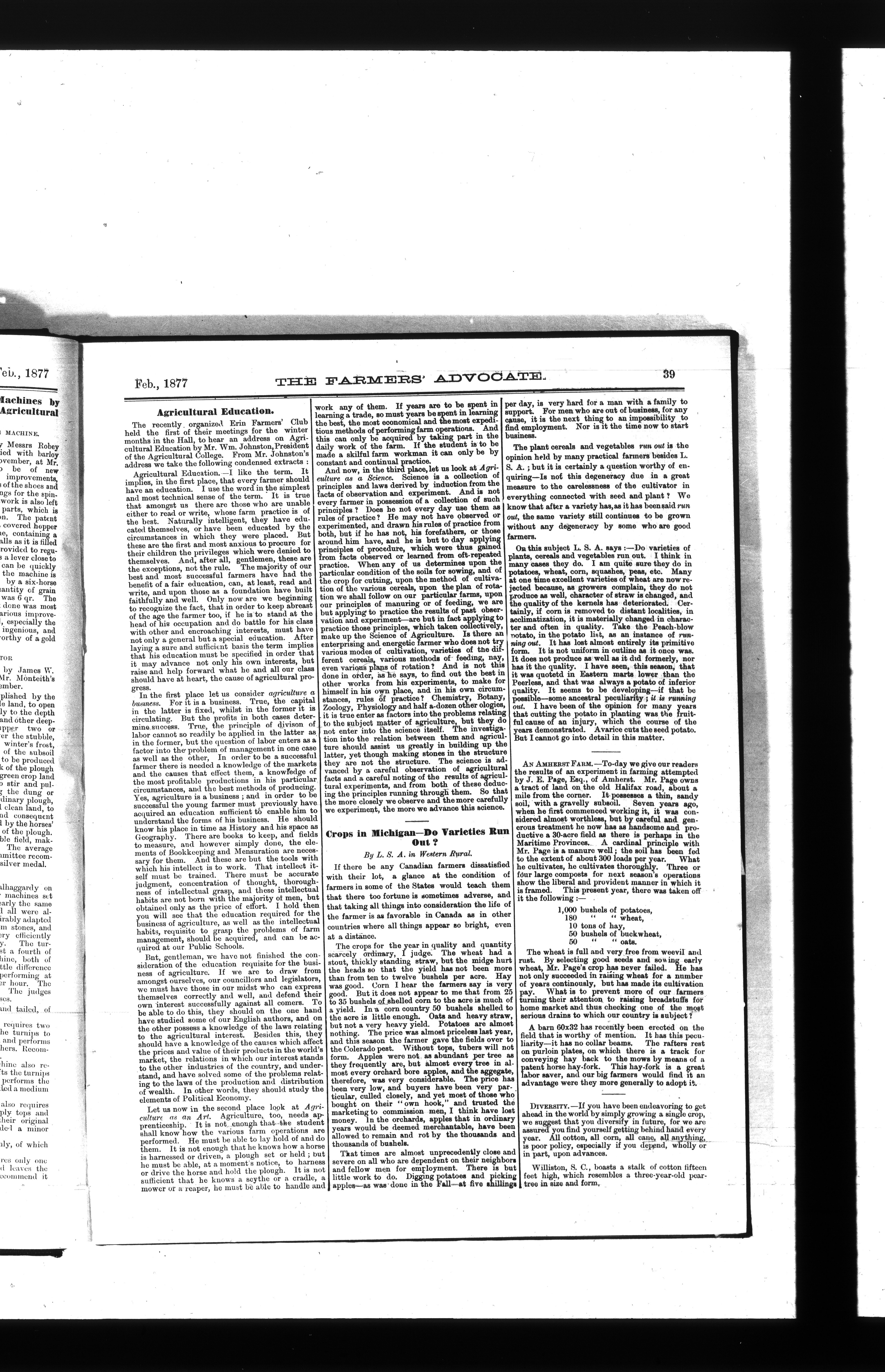 The farmer's advocate : Vol. XII, No. 2 (Febraury 1877)