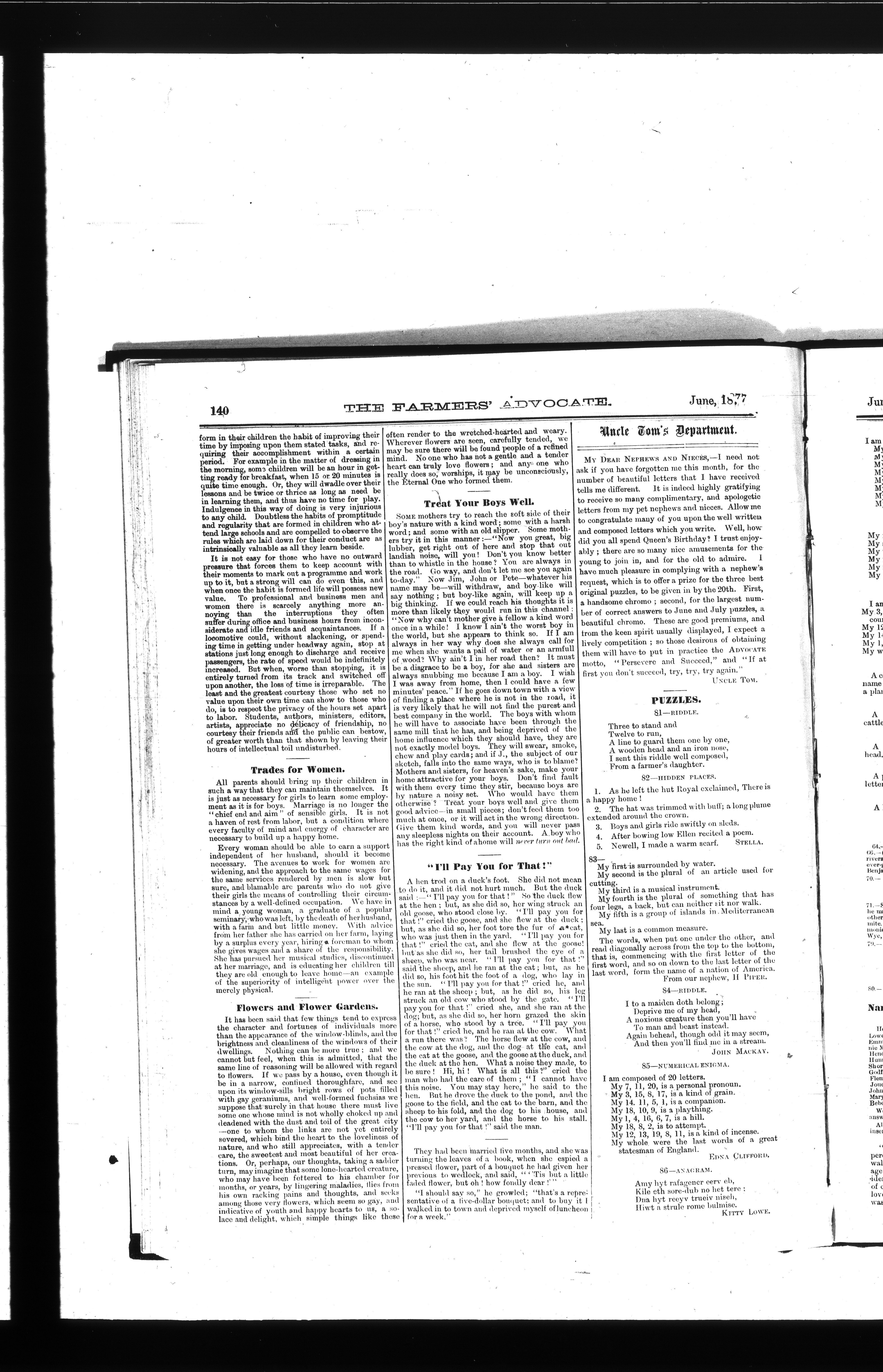 The farmer's advocate : Vol. XII, No. 6 (June 1877)