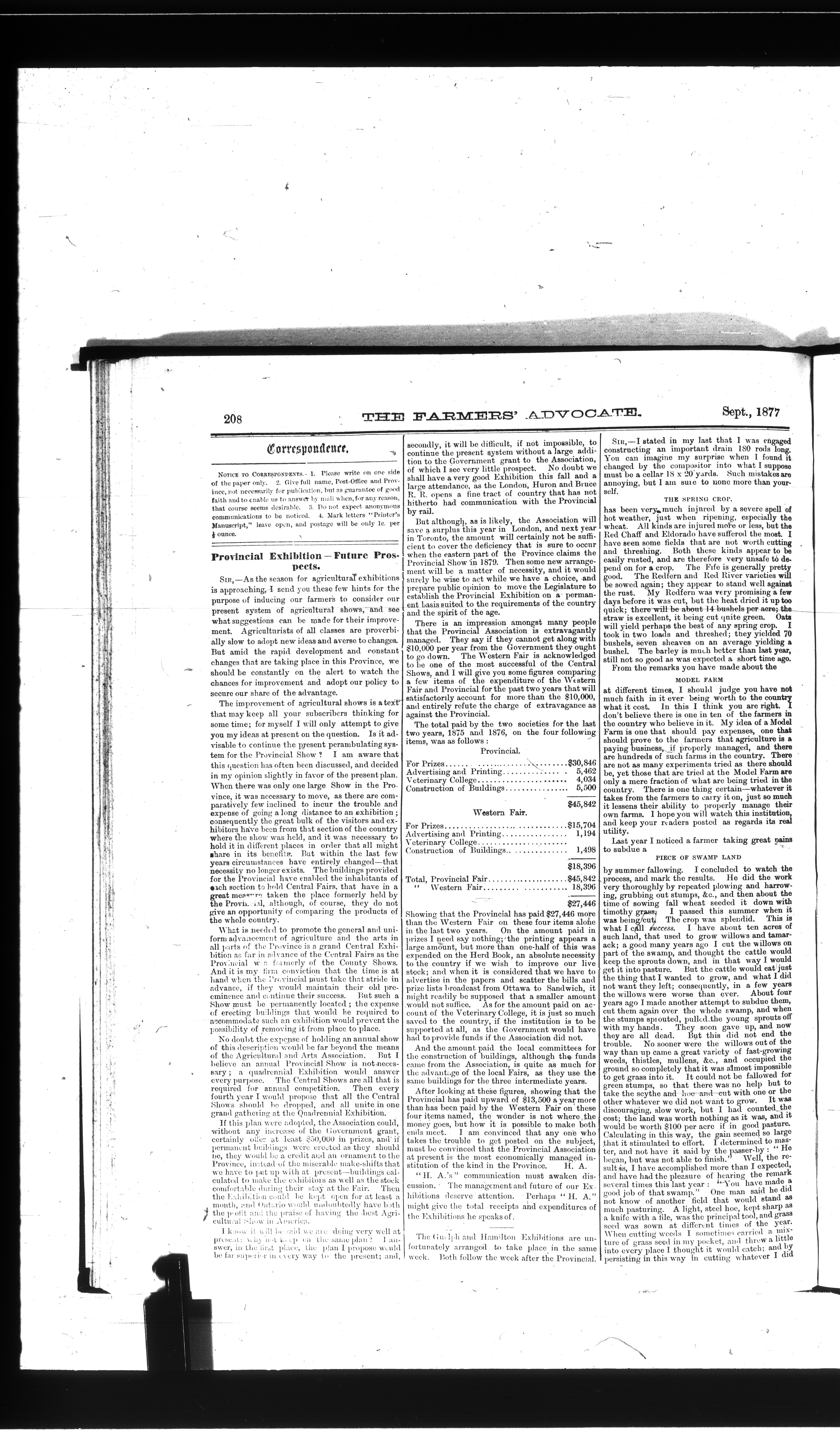 The farmer's advocate : Vol. XII, No. 9 (September 1877)