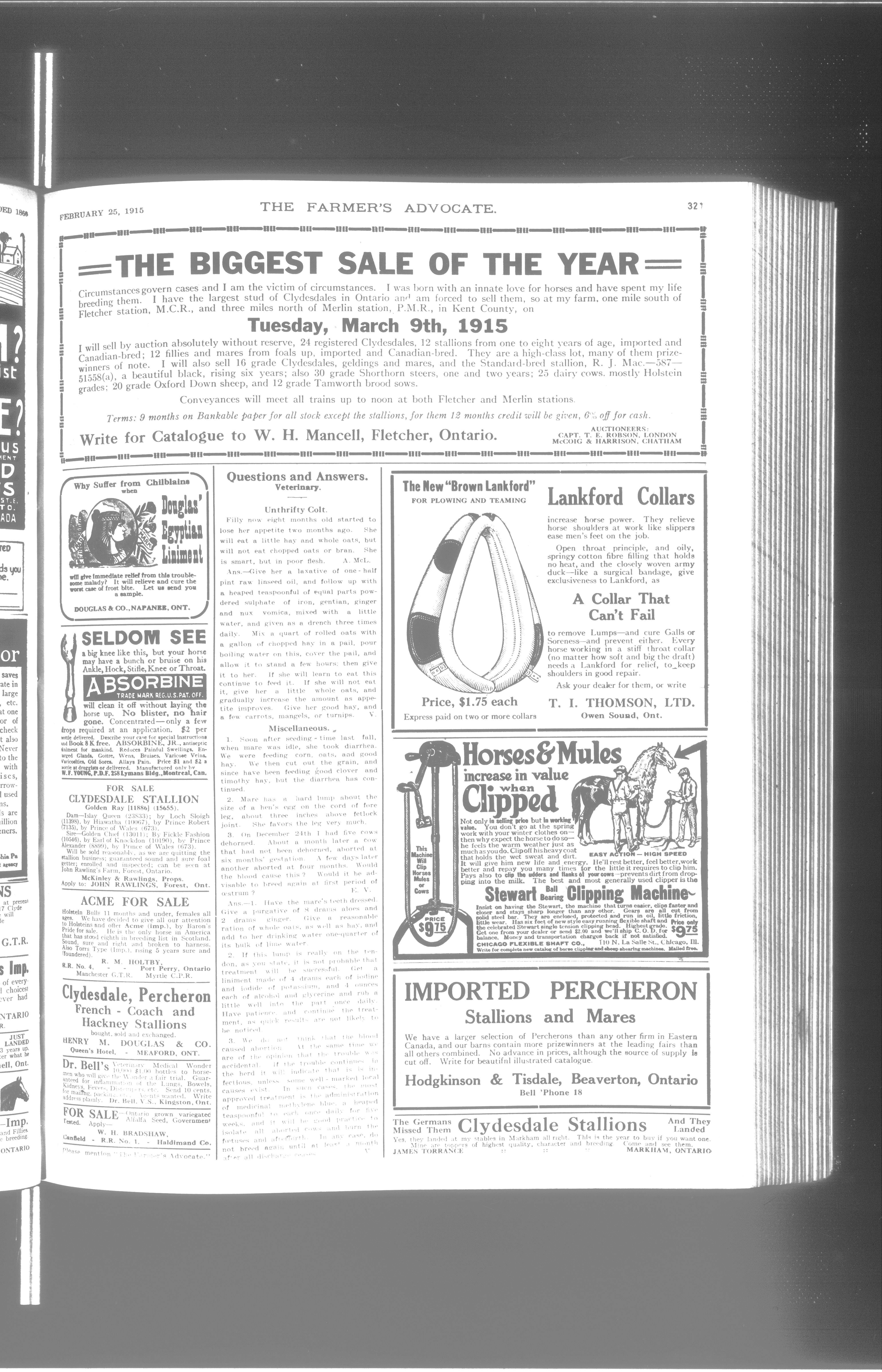 Farmer's Advocate and Home Magazine : Vol. L, No. 1170 (February 25, 1915)