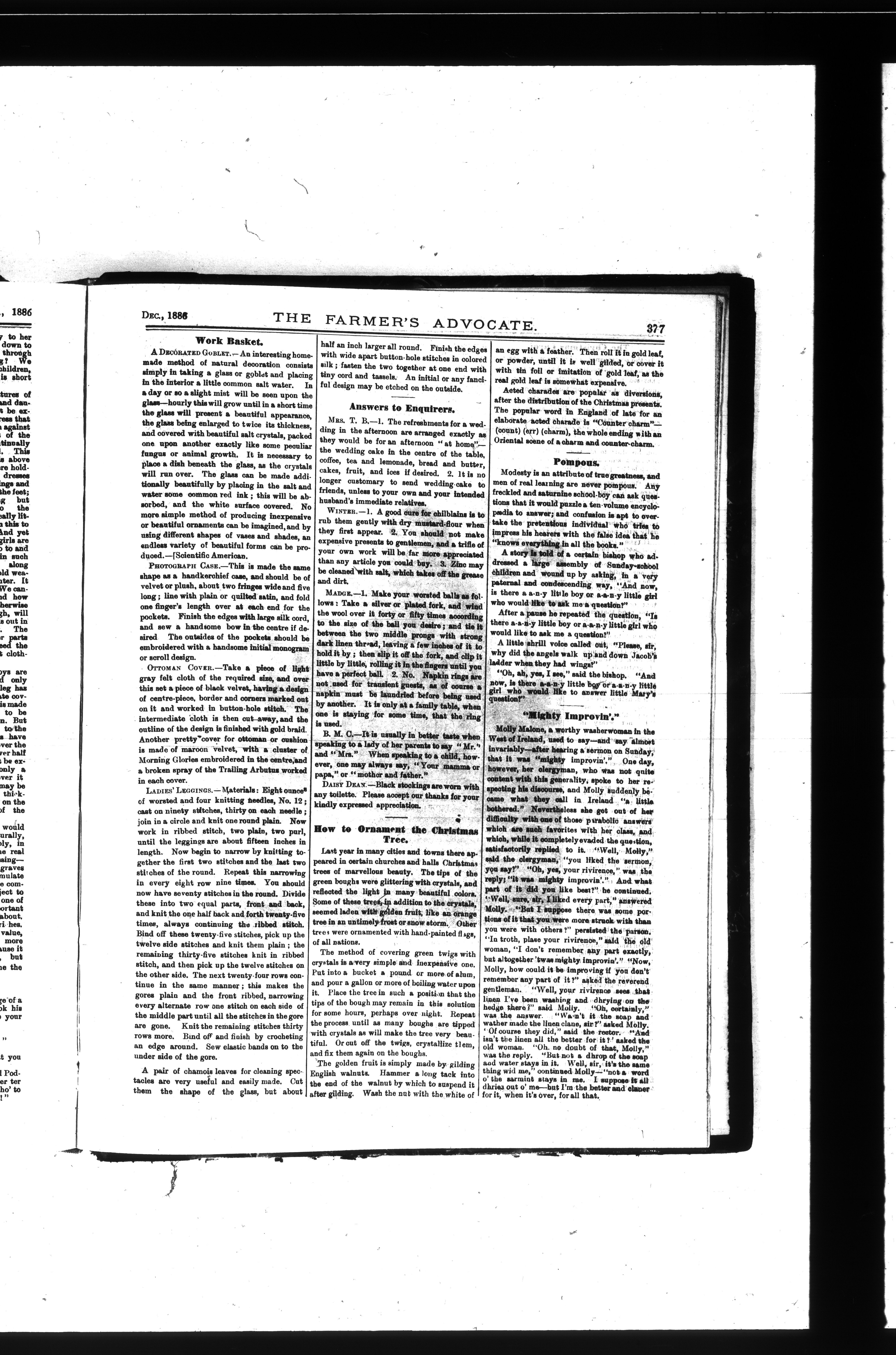 Farmer's Advocate and Home Magazine : Vol. XXI, No. 252 (December 1886)