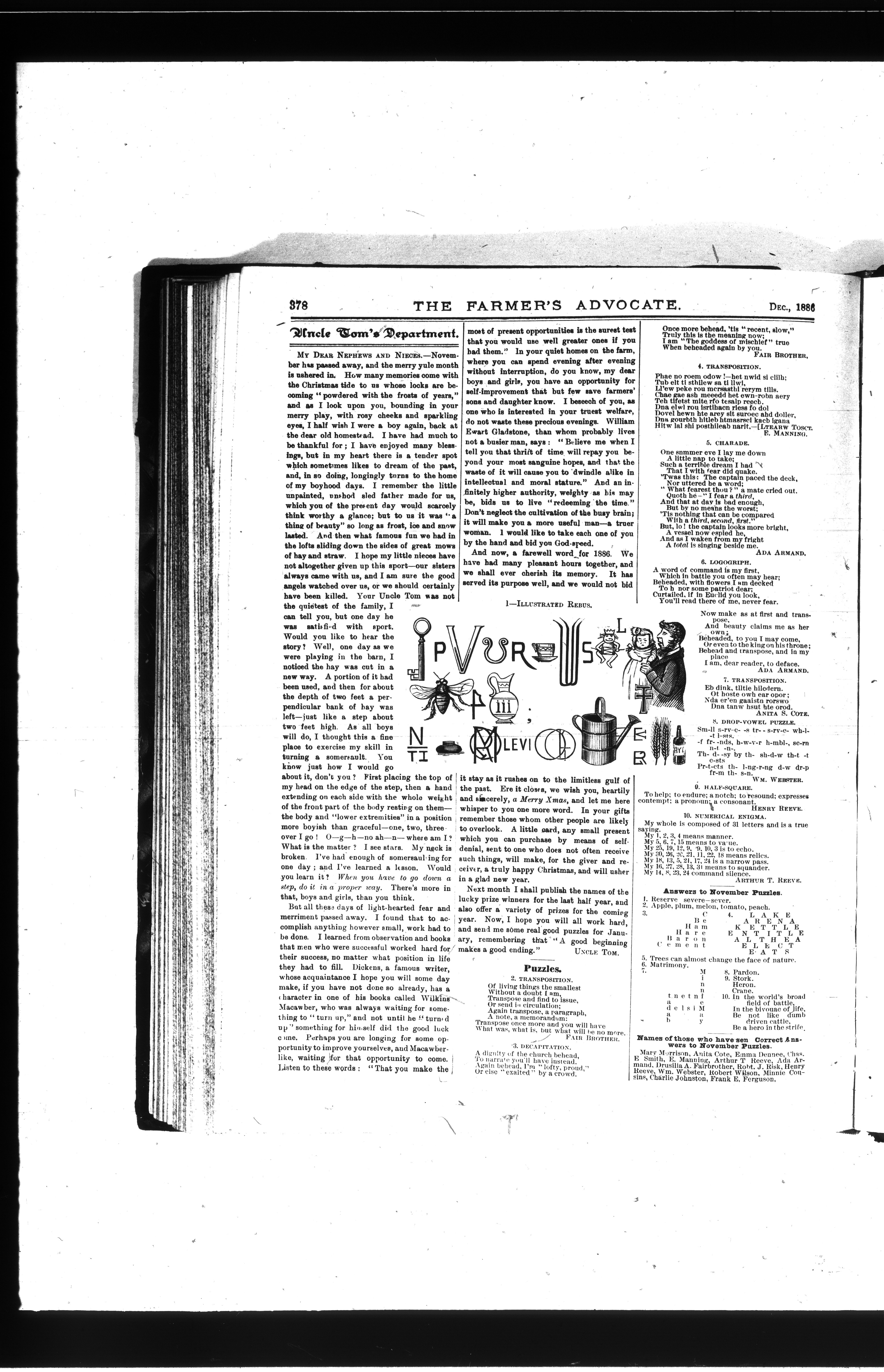 Farmer's Advocate and Home Magazine : Vol. XXI, No. 252 (December 1886)