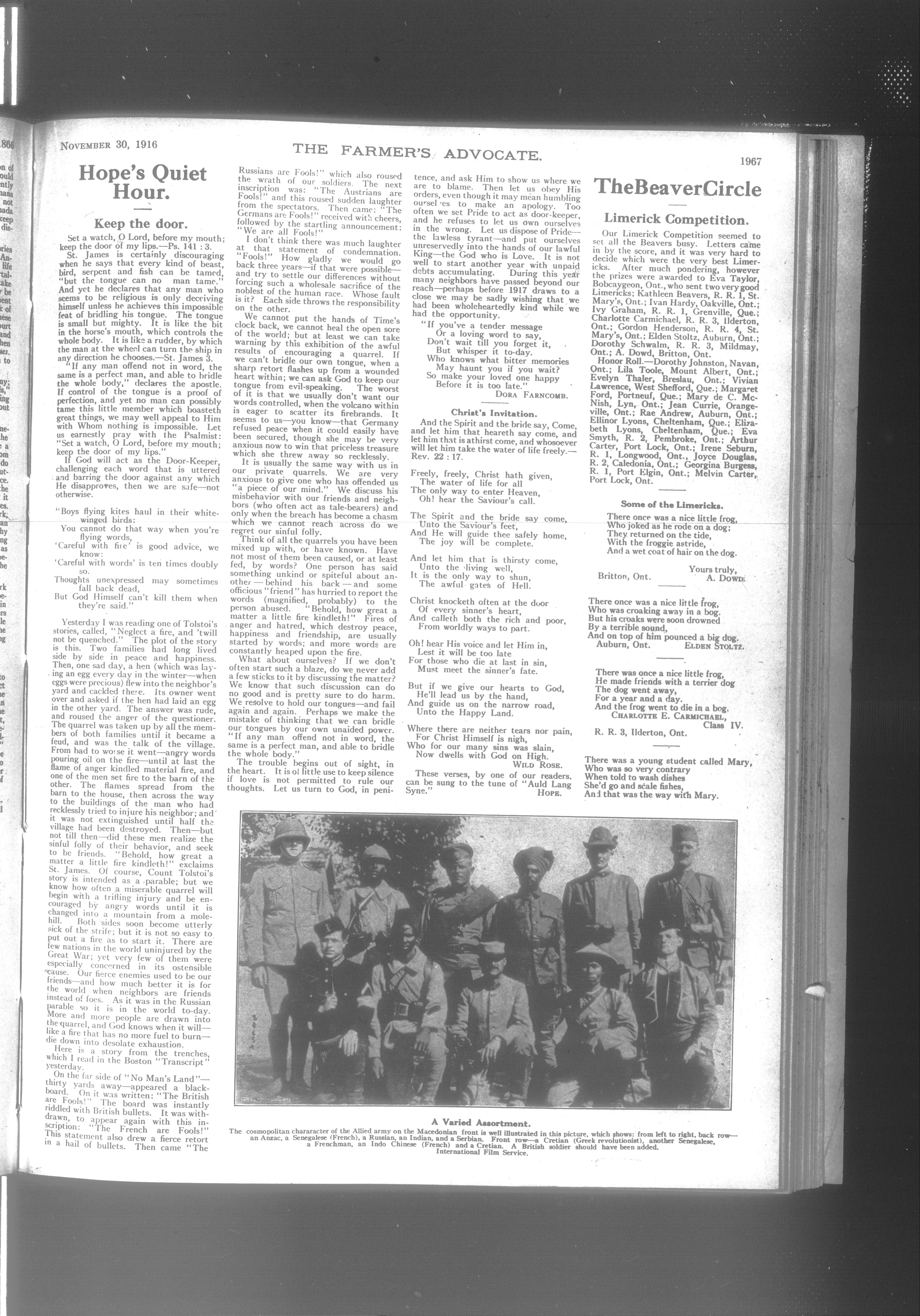 Farmer's Advocate and Home Magazine : Vol. LI, No. 1262 (November 30, 1916)