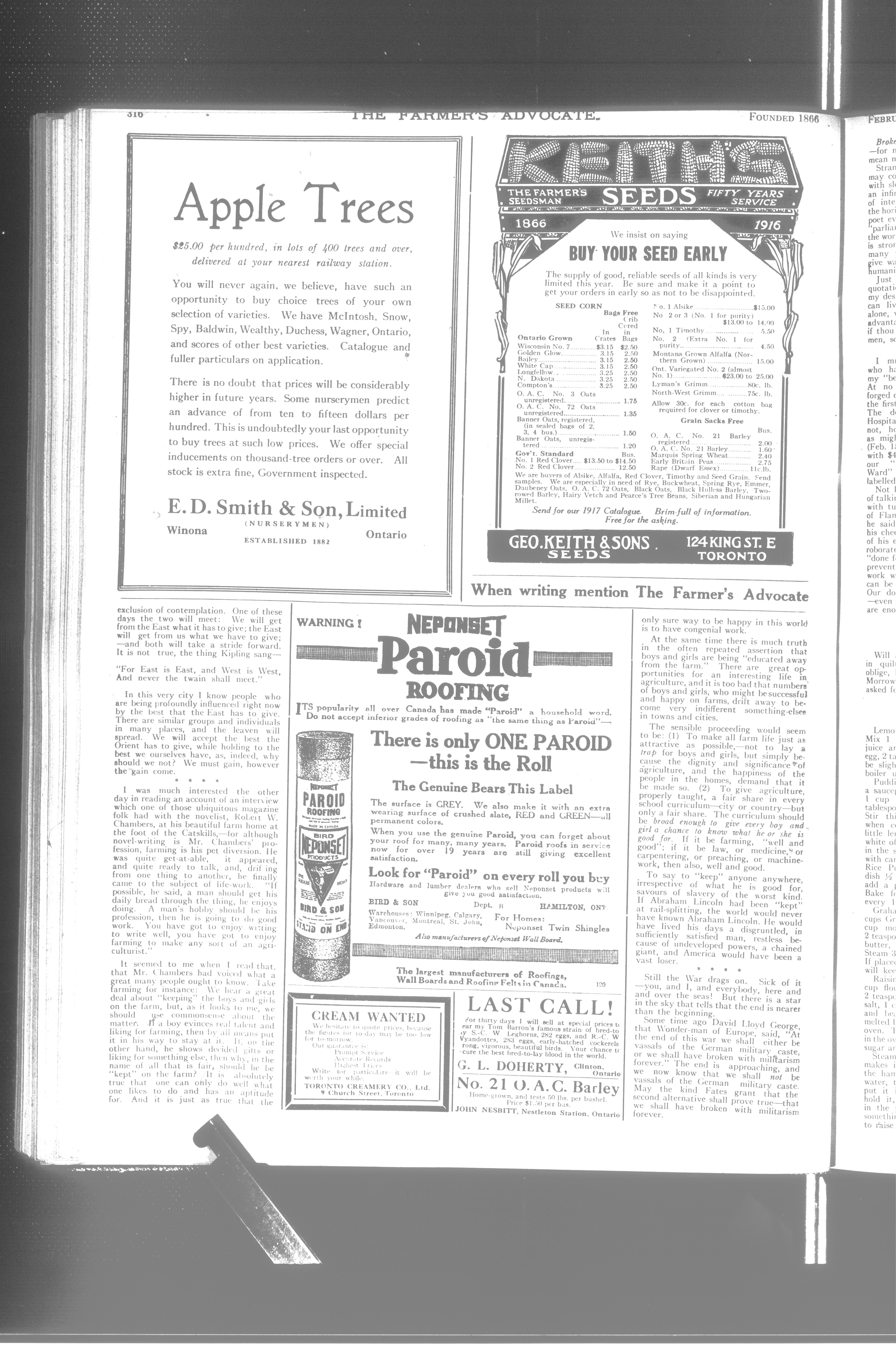 Farmer's Advocate and Home Magazine : Vol. LII, No. 1274 (February 22, 1917)