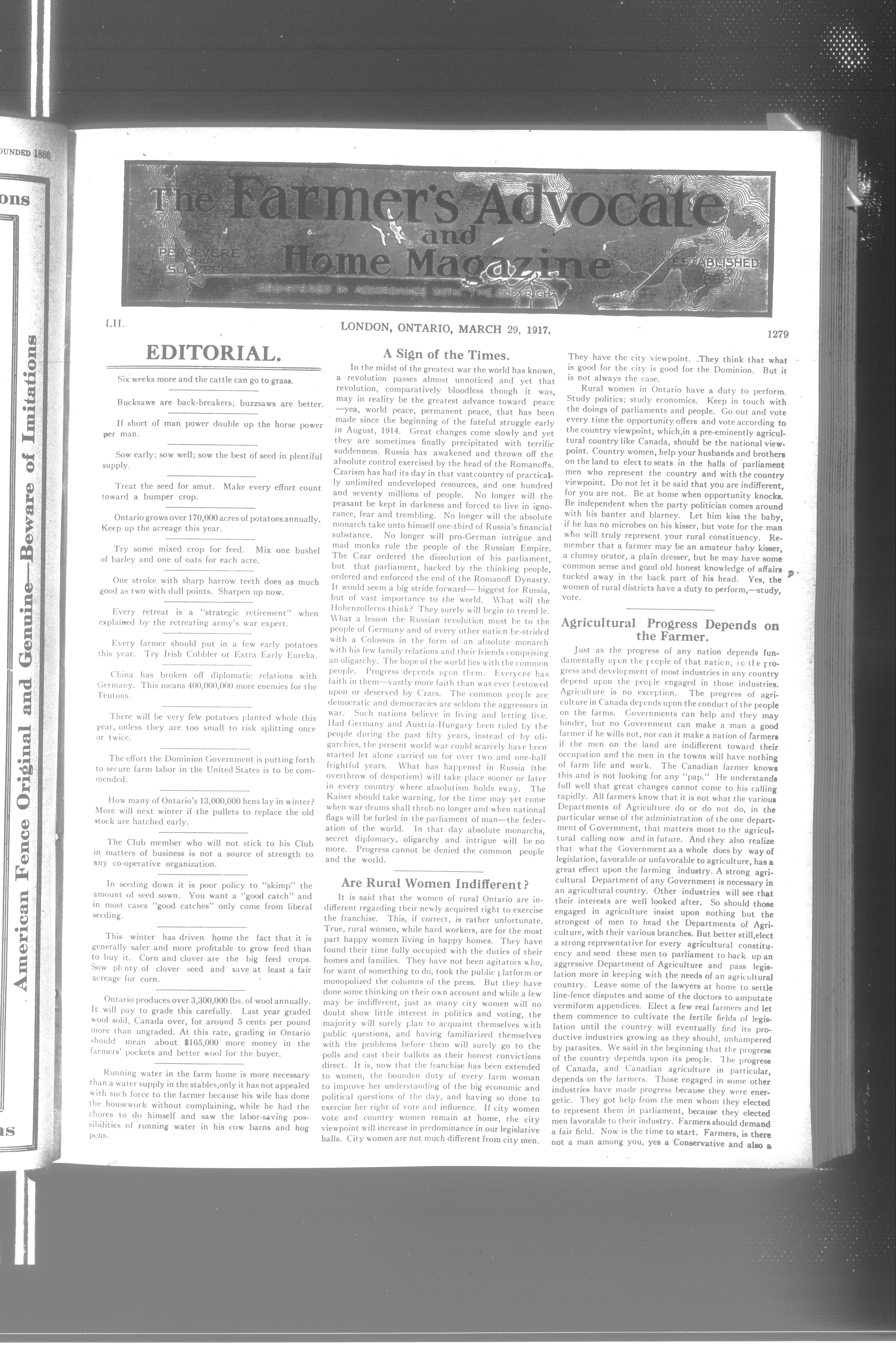 Farmer's Advocate and Home Magazine : Vol. LII, No. 1279 (March 29, 1917)