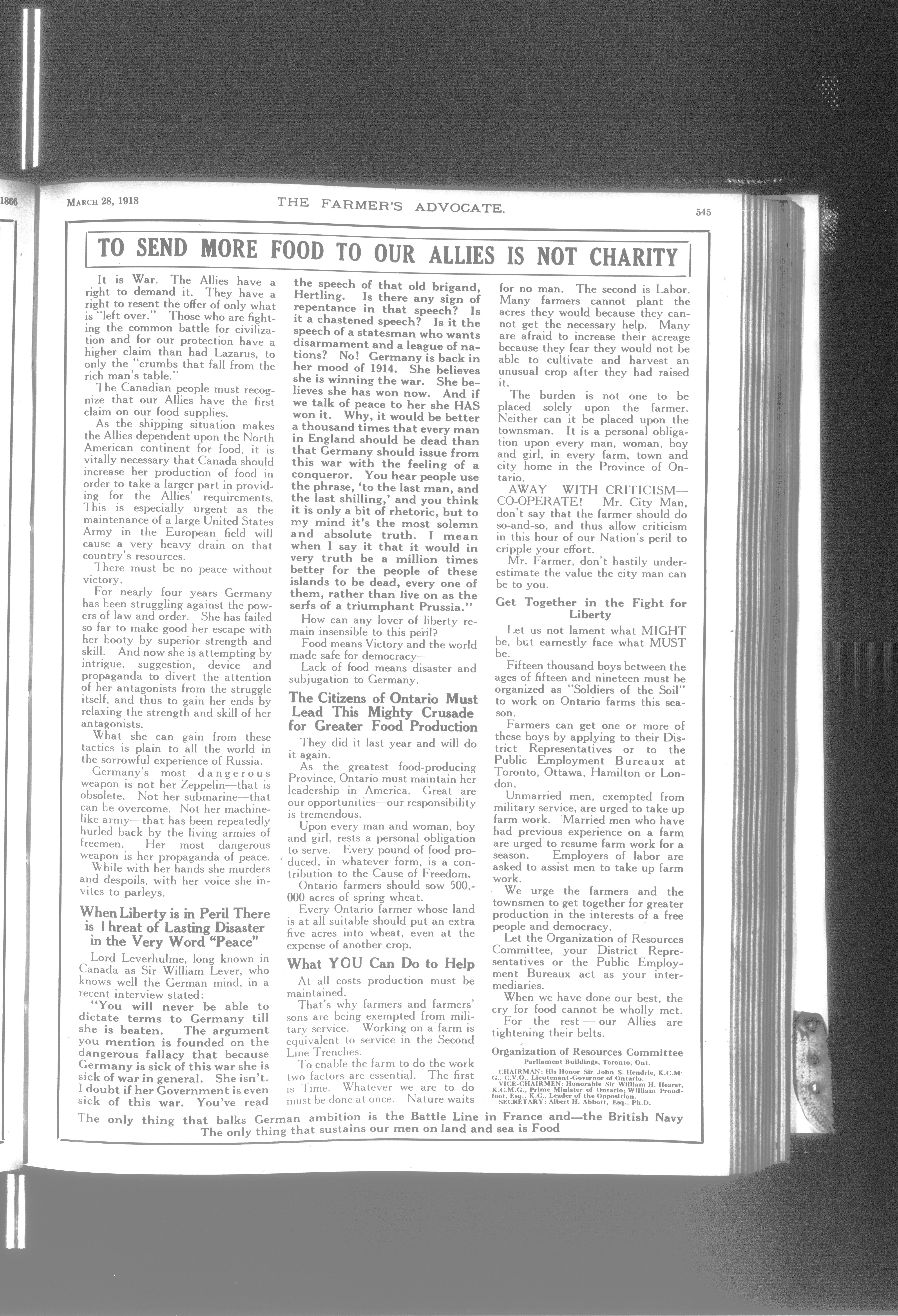 Farmer's Advocate and Home Magazine : Vol. LIII, No. 1331 (March 28, 1918)