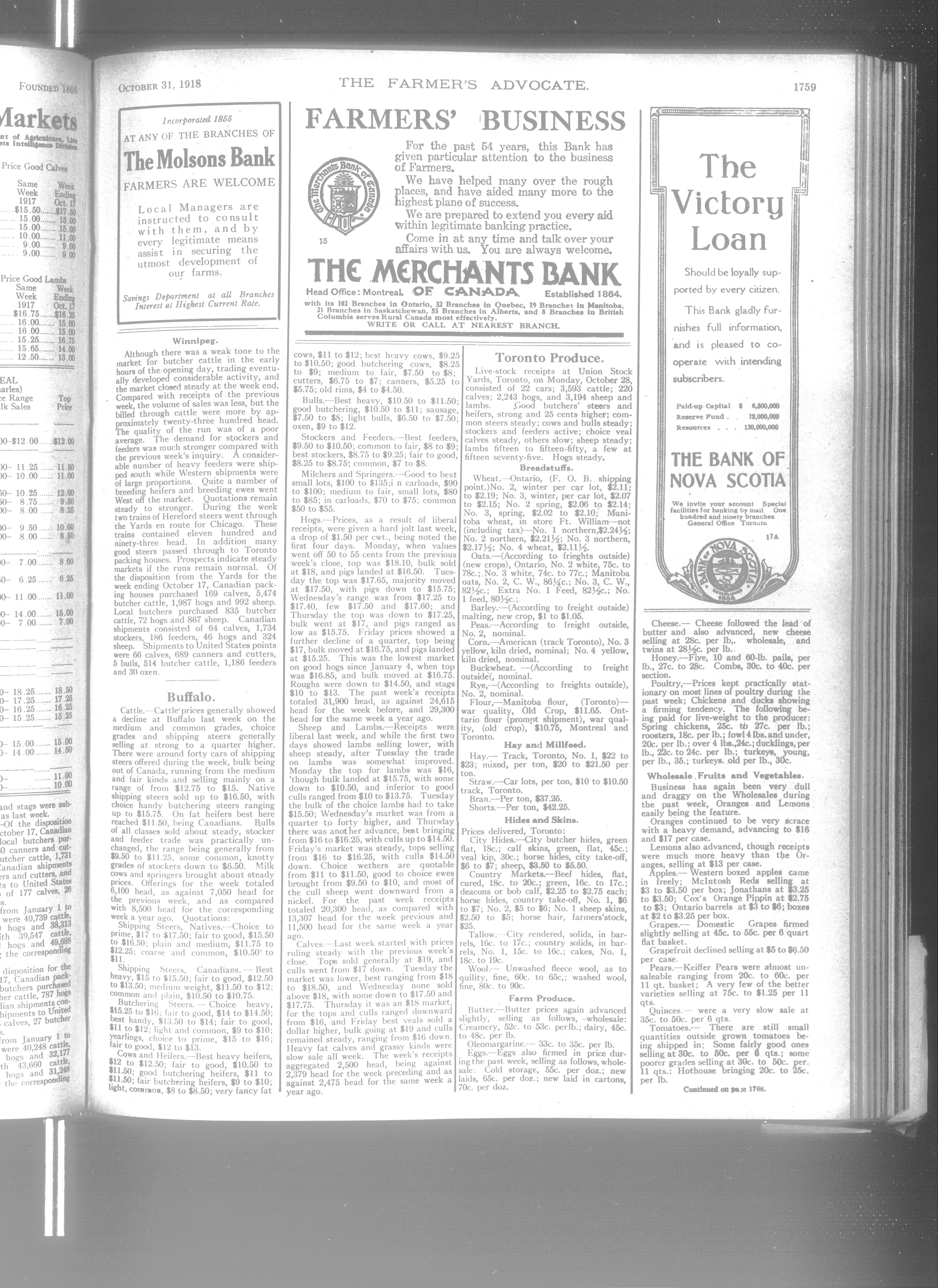Farmer's Advocate and Home Magazine : Vol. LIII, No. 1362 (October 31, 1918)