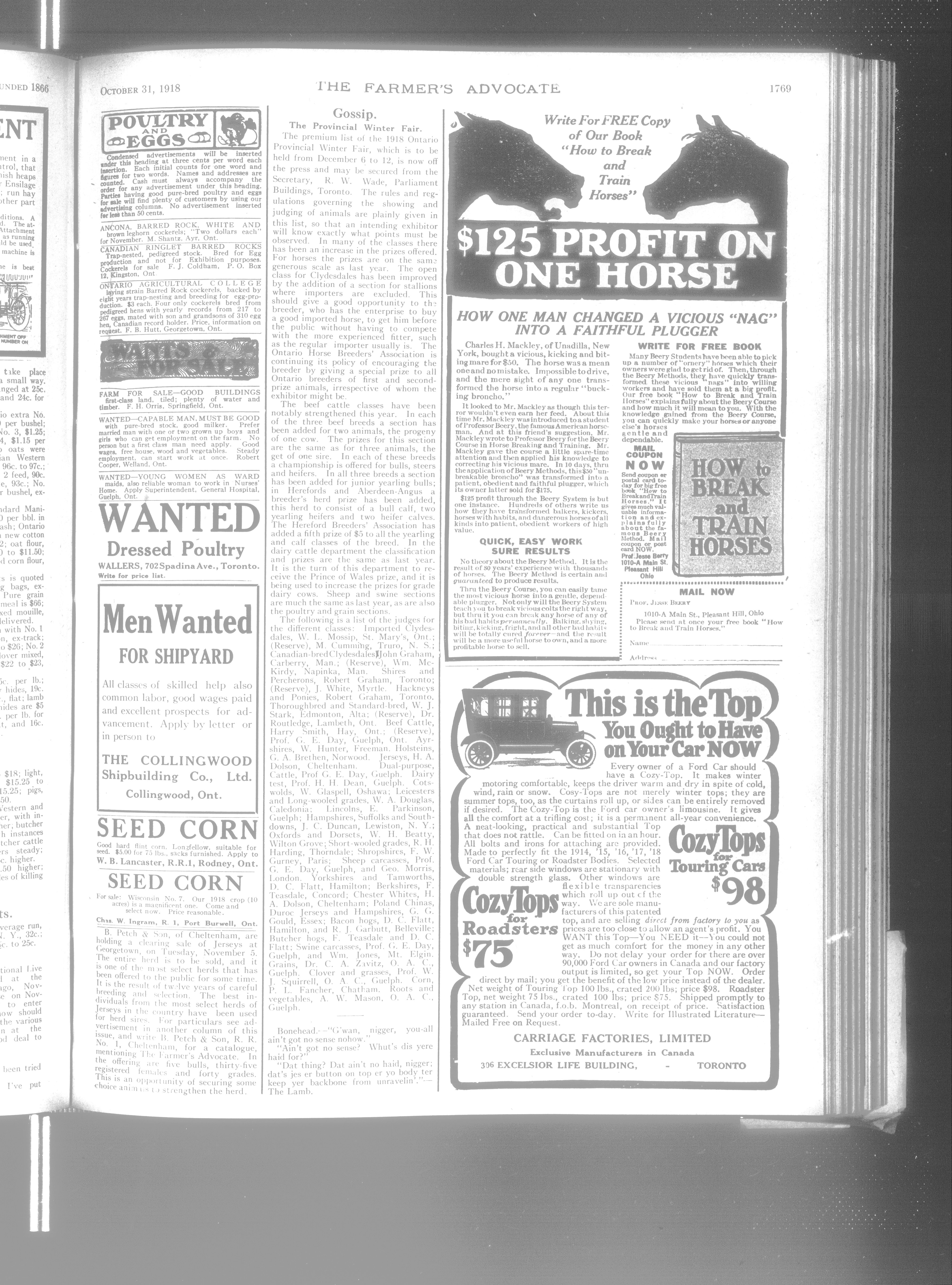 Farmer's Advocate and Home Magazine : Vol. LIII, No. 1362 (October 31, 1918)