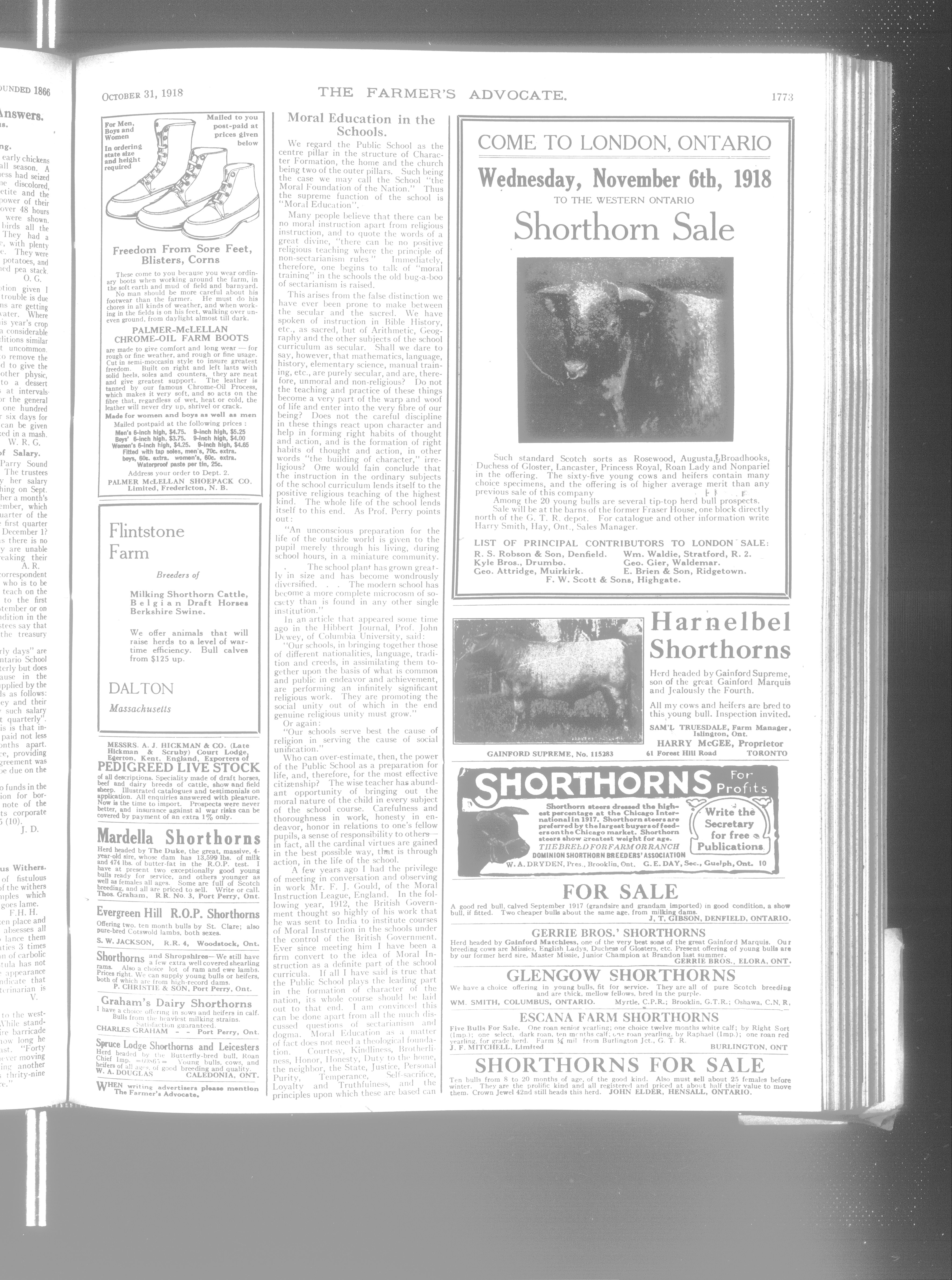 Farmer's Advocate and Home Magazine : Vol. LIII, No. 1362 (October 31, 1918)