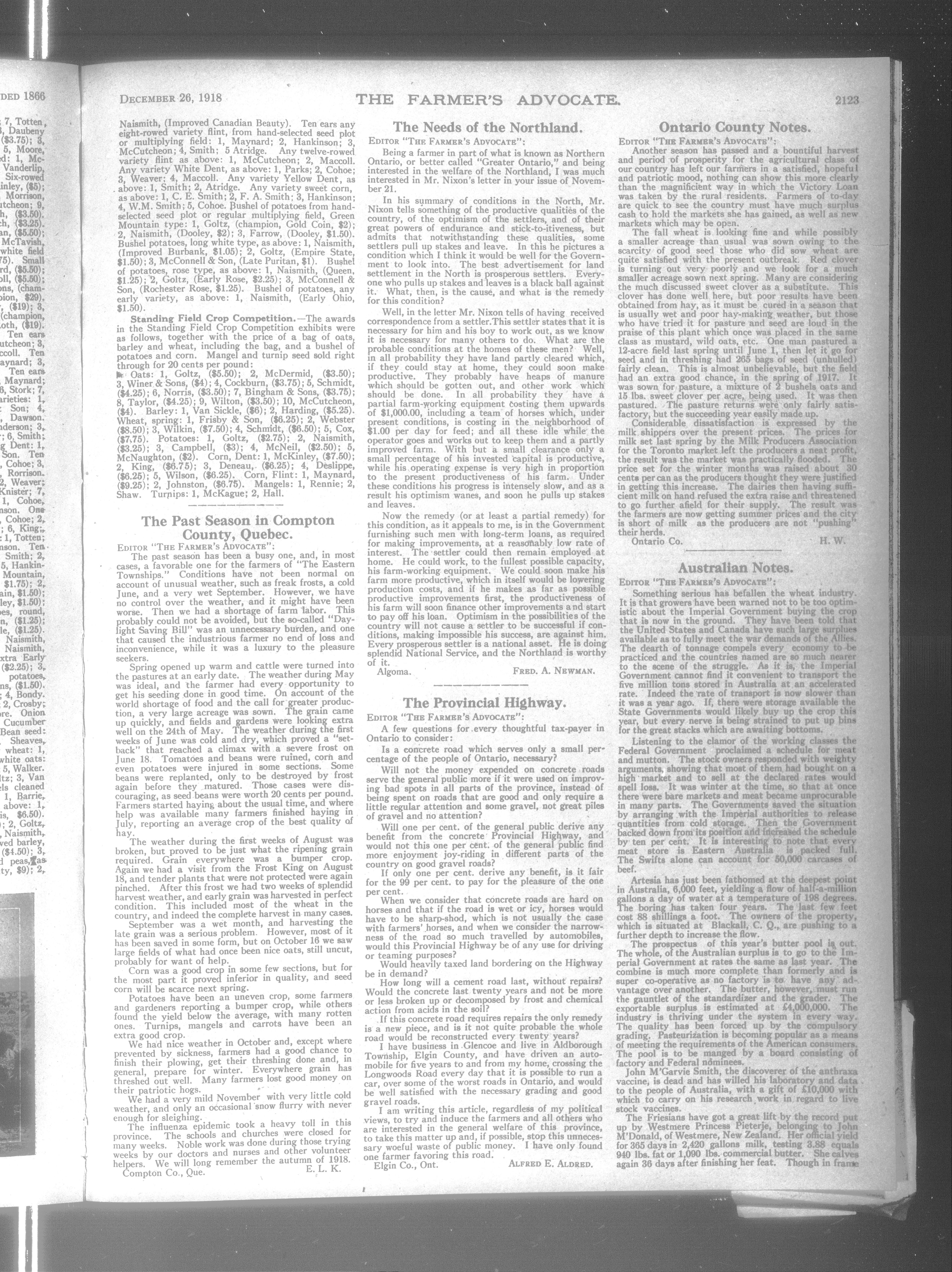 Farmer's Advocate and Home Magazine : Vol. LIII, No. 1370 (December 26, 1918)
