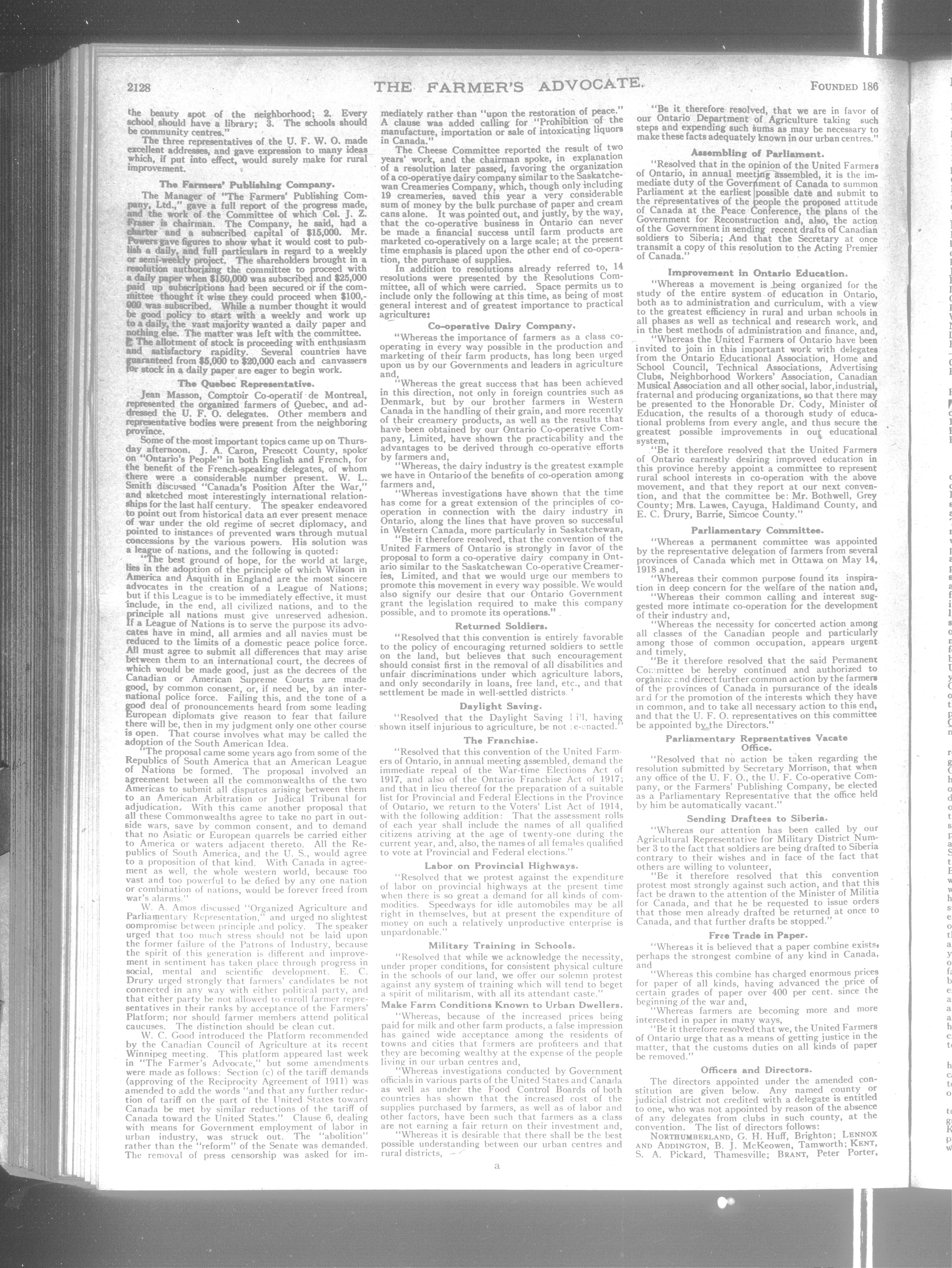 Farmer's Advocate and Home Magazine : Vol. LIII, No. 1370 (December 26, 1918)