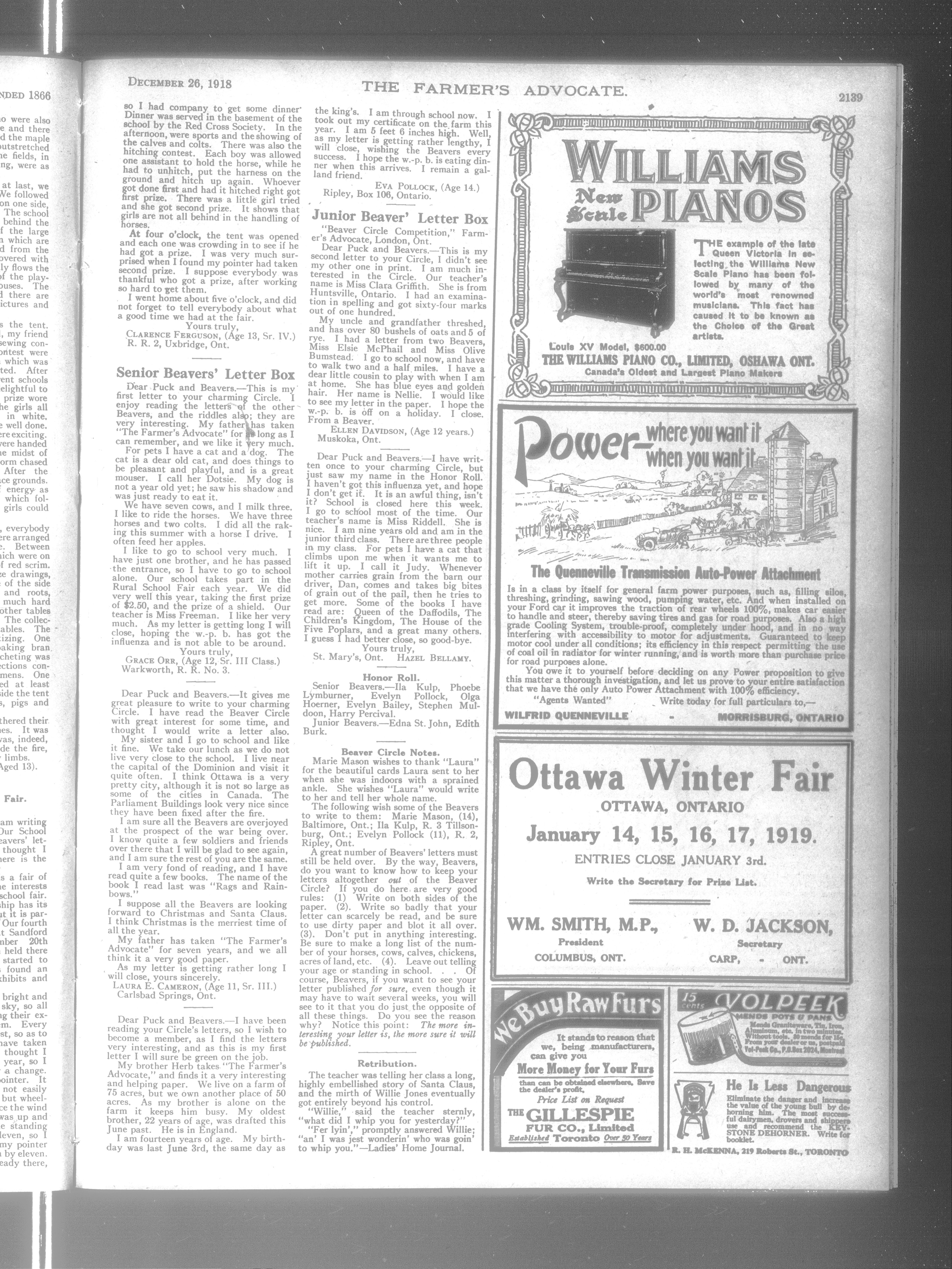 Farmer's Advocate and Home Magazine : Vol. LIII, No. 1370 (December 26, 1918)