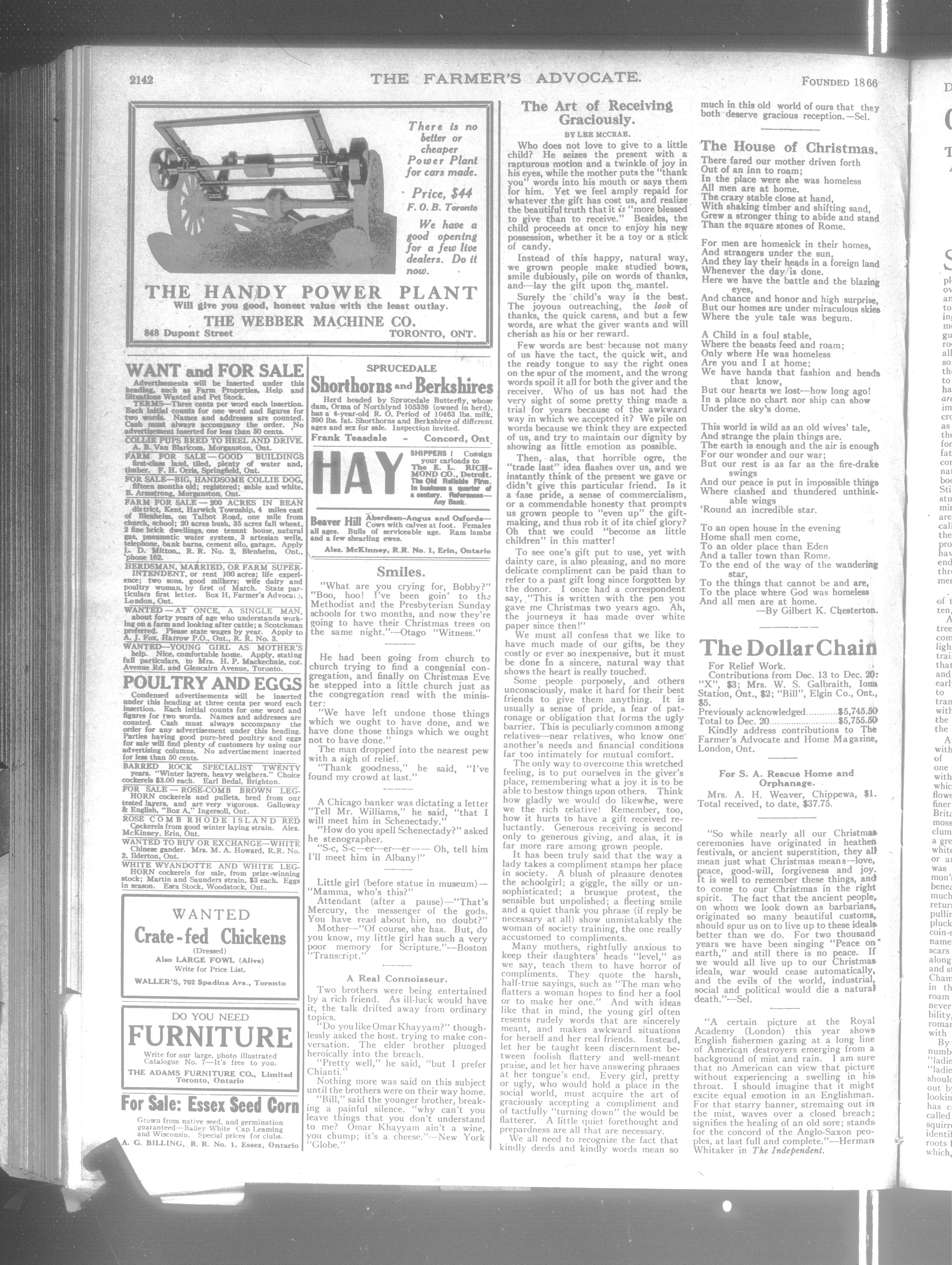 Farmer's Advocate and Home Magazine : Vol. LIII, No. 1370 (December 26, 1918)