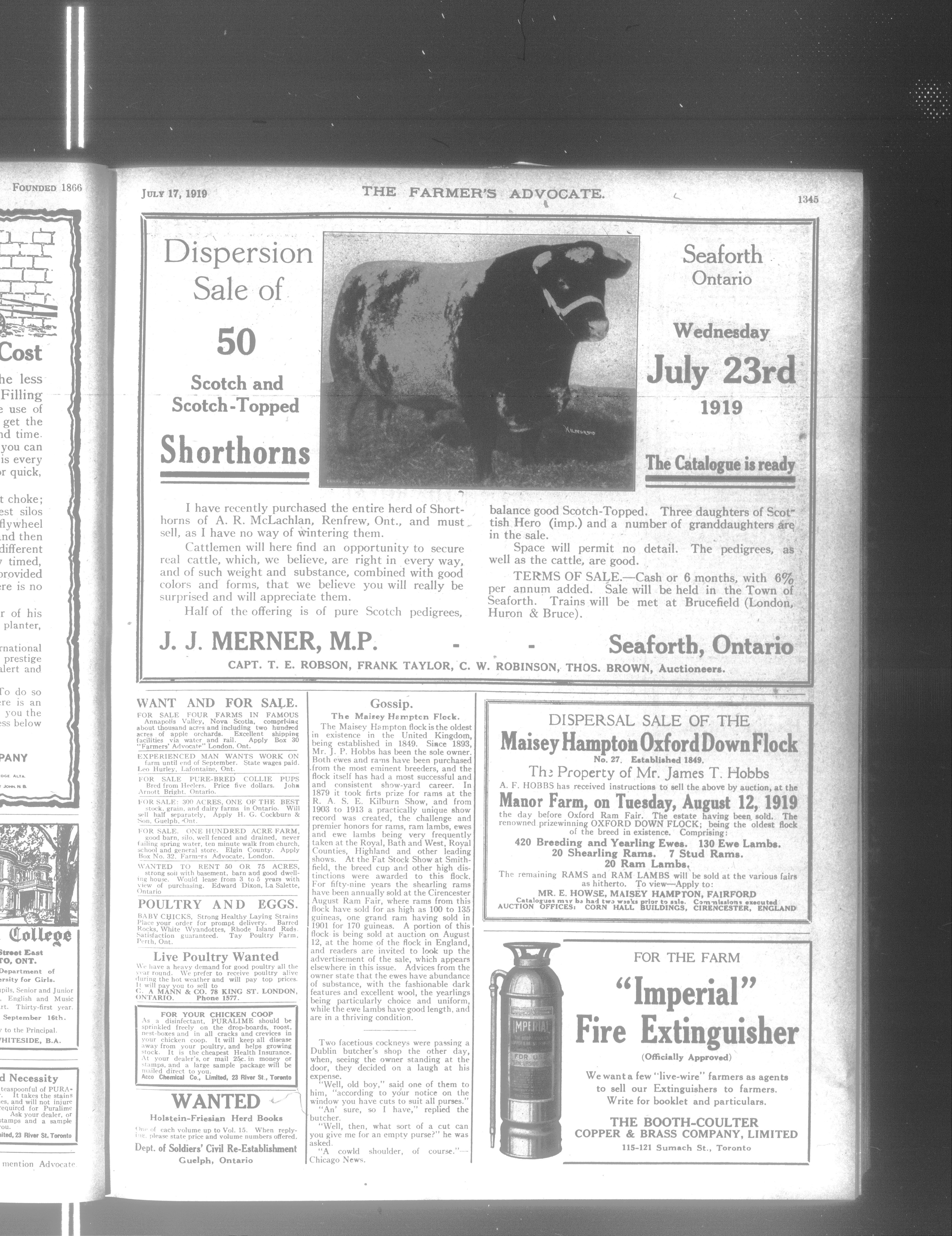 Farmer's Advocate and Home Magazine : Vol. LIV, No. 1399 (July 17, 1919)