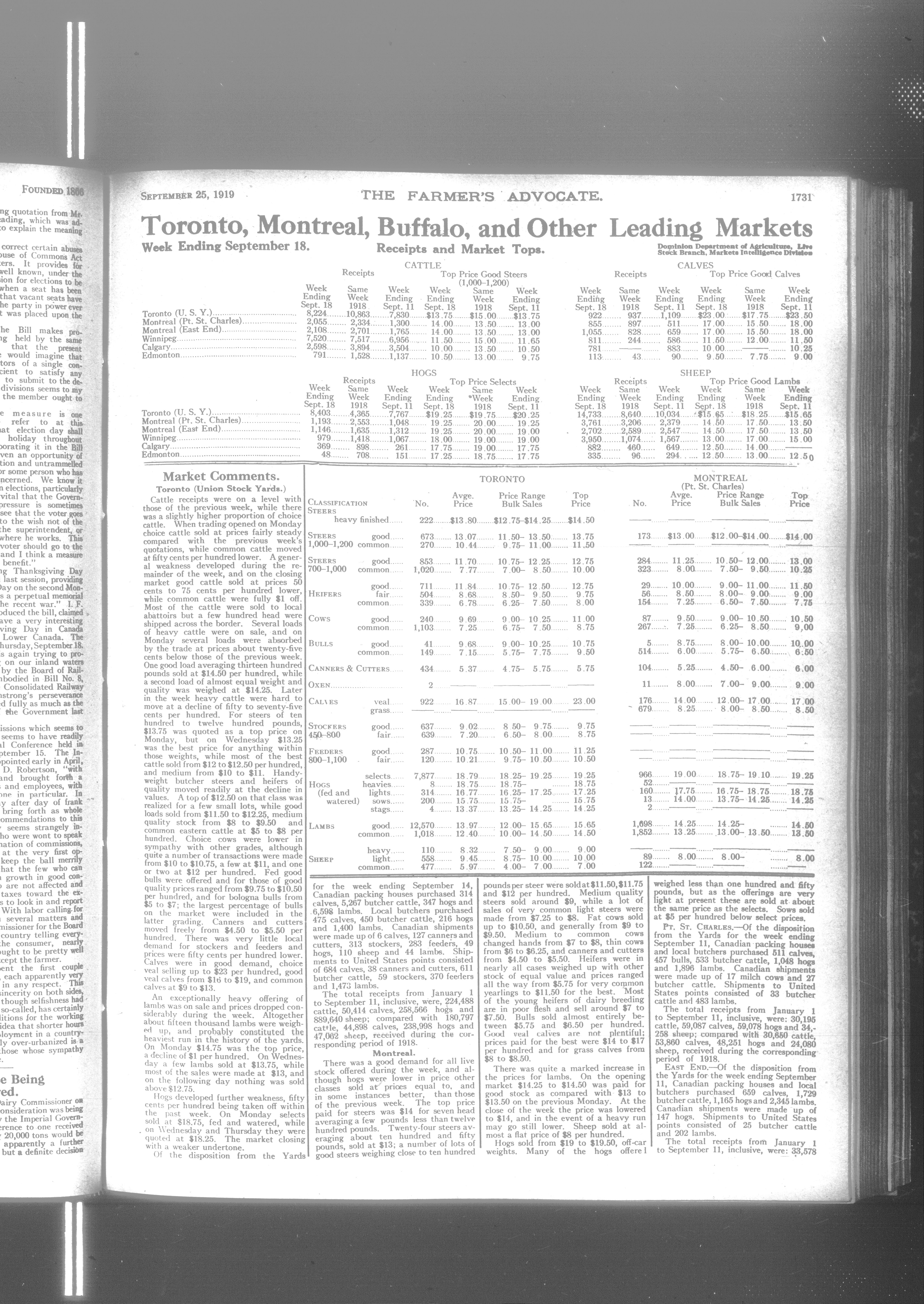 Farmer's Advocate and Home Magazine : Vol. LIV, No. 1409 (September 25, 1919)