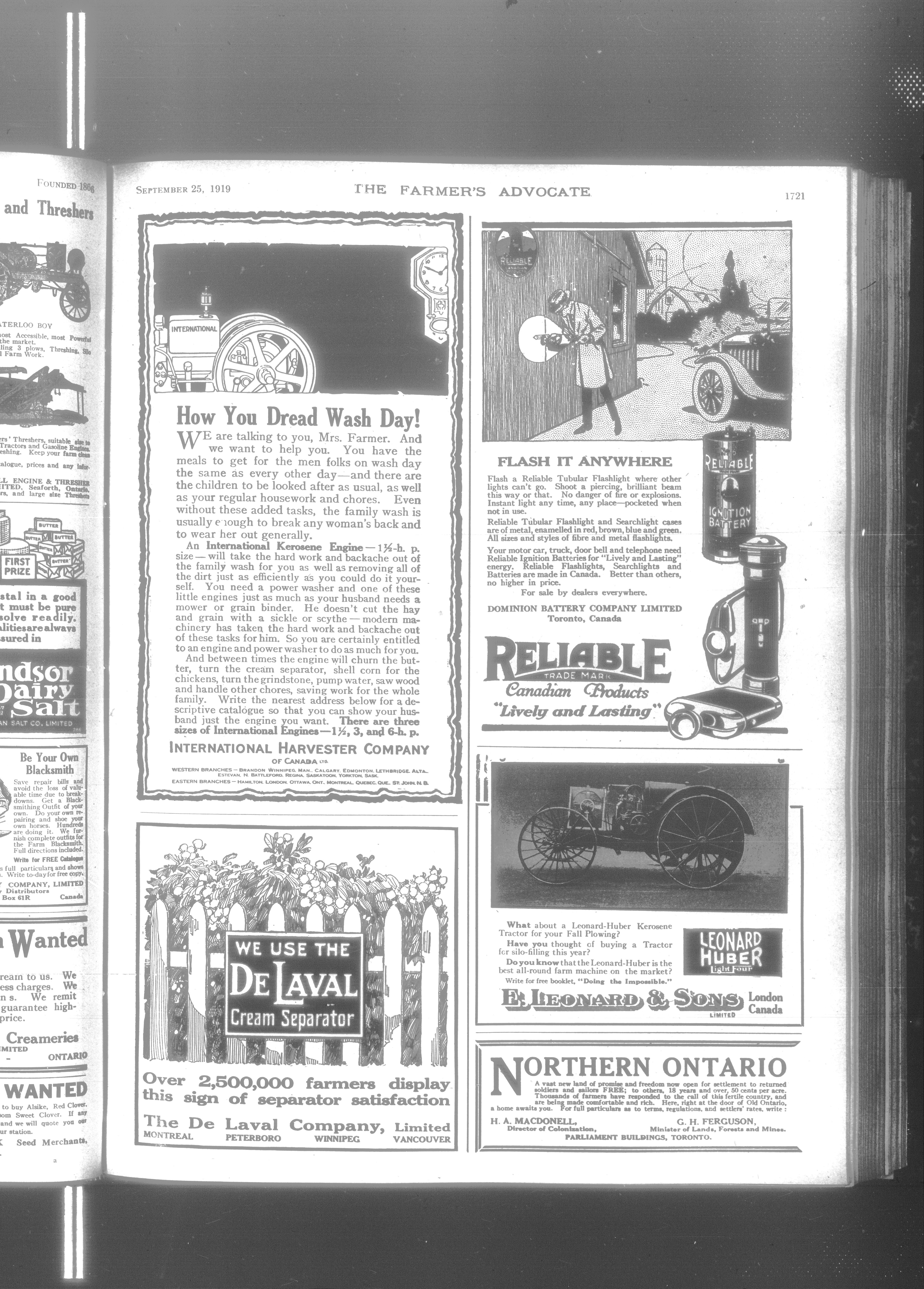 Farmer's Advocate and Home Magazine : Vol. LIV, No. 1409 (September 25, 1919)